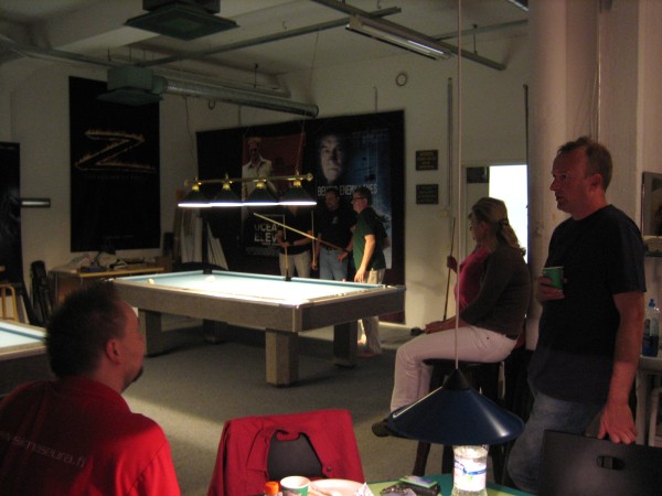 | Siimaseuran kauden 2011-2012 päättäjäiset 30.06.2012SM-hopean poolista, SM-pronssin kolmen vallin karasta ja mitaleita Suomen Biljardiliitto ry:n seniorisarjojen rankingkisoista sekä yhden Pirkanmaan mestaruuskisapalkinnon tuonut Pyhäjärven Siimaseura ry:n kausi 2011-2012 päätettiin lauantaina 30.06.2012. Päivä alkoi klo 13:00 yleiskokouksella, jatkui kausipalkintojen jaolla ja päättyi parikilpailuun, jonka lomassa nautittiin hyvästä ruoasta ja tutustuttiin toisiin. Yleiskokouksessa Pyhäjärven Siimaseura ry:n hallituksen puheenjohtajaksi valittiin Mika Salonen, joka jatkaa tehtävässään. Hallitukseen valittiin Hannu Hupli, Timo Leskinen, Teemu Miskala, Sami Saariaho ja Jarno Saimaja. Sekä Jarnolle että Teemulle kausi 2012-2013 on ensimmäinen hallituksessa, kun taas muille homma alkaa olla jo tuttua kauraa... Yhdistyksen kausipalkinnot kaudella 2011-2012 menivät jakoon siten, että Kuha-palkinto meni Hannu Huplille. "Hanski" otti voiton MN50-sarjan rankingkisassa. Sensaatio-palkintoja annettiin poikkeuksellisesti kaksi: karan pari-SM:ssä pronssia voittaneelle Mika Saloselle sekä liigajoukkue Siimaseuran Sankareita hienosti tsempanneelle ja johtaneelle Teemu Miskalalle. 9-palloa kahteen voittoon ilman tasoituksiaKun pakolliset osiot eli kokous ja palkitsemiset oli saatu hoidettua, oli aika siirtyä ruoka- ja pelipöydille. 9-pallon parikilpailuun saatiin seitsemän paria. Sirpa Walkerille kisakokemus oli ensimmäinen laatuaan, mutta hyvinhän homma tuntui Richardin parina sujuvan. Matti "Masa" Järvinen ja pyörällään jarrut kirskuen paikalle karauttanut Juuso Järventie laitettiin kisapariksi. Pariksi päätyivät myös Marja Lindén ja Sami Saariaho. Teemu Miskala ja Jarno Saimaja pelasivat yhdessä. Muut parit muodostivat Minna Sorri ja Timo Leskinen, Maiju Kangasniemi ja Mika Salonen sekä Marjo ja Hannu Hupli. Huplit puolustivat viime vuoden voittoaan. Tällä kertaa Tampereen Pyhäjärven lähettyvillä pelatussa kilpailussa puhalsivat kuitenkin uudet tuulet. Maiju Kangasniemen onnekas yhdeksikkö päätöspelissä Minna Sorria ja Timo Leskistä vastaan tiesi sitä, että Maiju oli juuri varmistanut ensimmäisen kisavoittonsa biljardissa. Parina pelaillut Mika Salonen ei voinut kuin raapia päätään ja hämmästellä, miten tässä nyt näin pääsi käymään, kun Maijun lyömä ysipallo parin vallin ja kilkan päätteeksi löysi tiensä... hmm... keskipussiin! Päätöslukemat 2-0 olivat tosiasia. Sen verran tasainen kisailu käytiin, että voitolla Minna ja Timo olisivat voittaneet kilpailun. Nyt he sijoittuivat kolmannelle sijalle. Toiseksi tulivat Marja Lindén ja Sami Saariaho, joten ei Marja ihan turhaan edellispäivänä Oulusta Tampereelle moottoripyörällään suunnannut... No, sijoituksia tärkeämpää oli kuitenkin nähdä vanhoja tuttuja, tutustua uusiin ihmisiin ja viettää mukava päivä Siimaseuralla. Ja mukava päivä, joka oli kuin huomaamatta ehtinyt jo iltaan, saatiinkin. Näin päättyi kausi 2011-2012. Uusi kausi alkaakin sitten perinteiseen tapaan Viron-reissulla. Kiitos päättäjäisiin ja Pyhäjärven Siimaseura ry:n toimintaan kaudella 2011-2012 osallistuneille sekä tervetuloa mukaan kaudella 2012-2013!