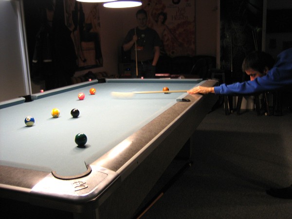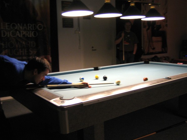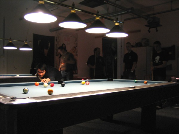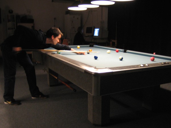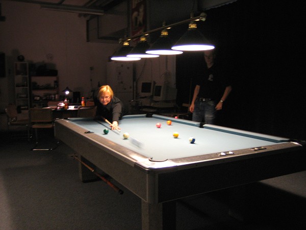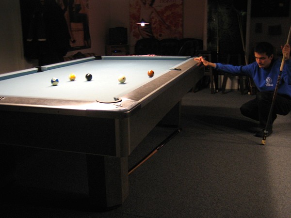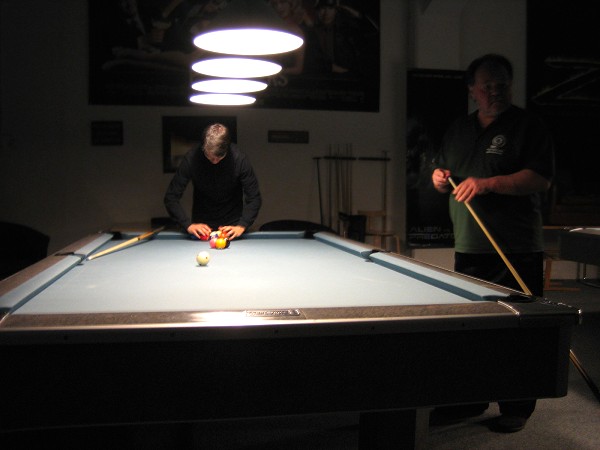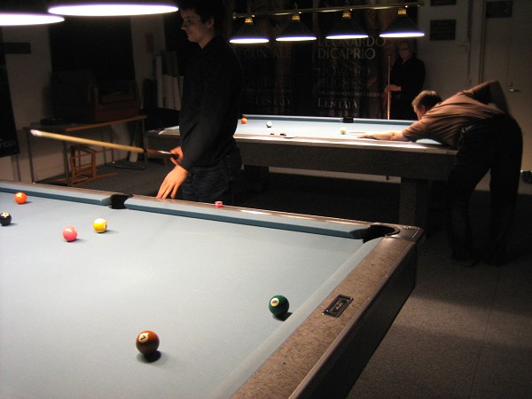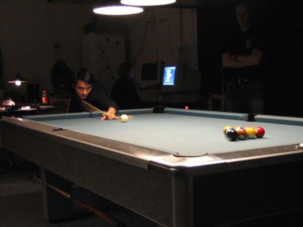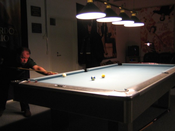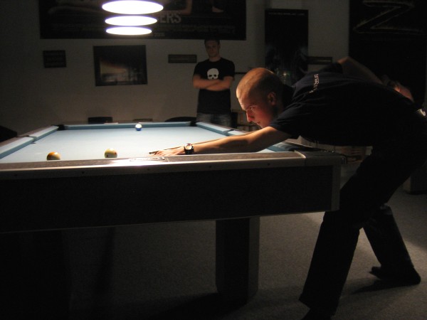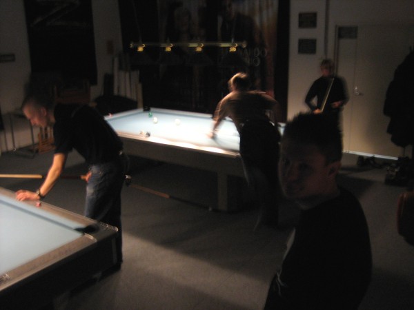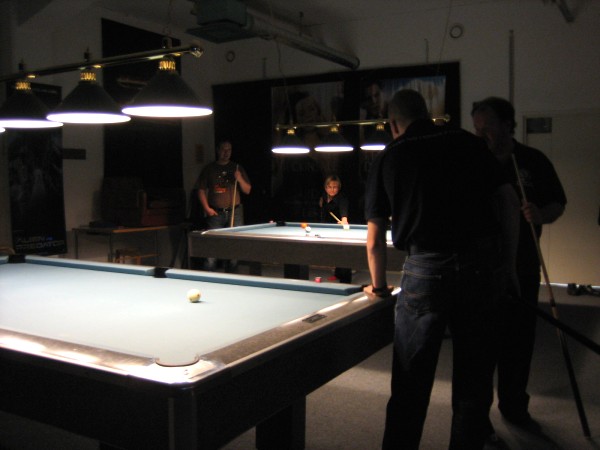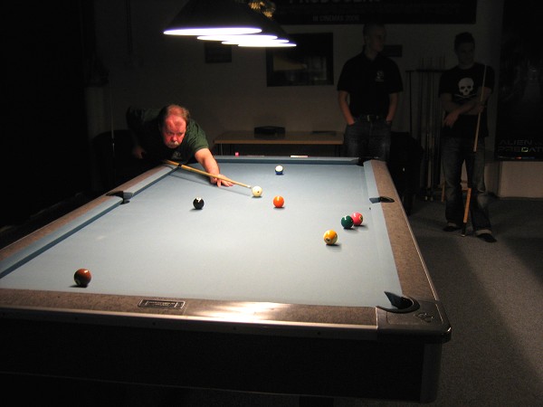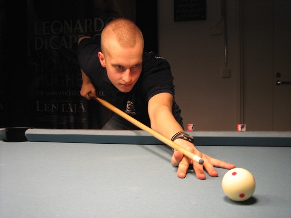 | Tapaninpäivän biljardikisailua Siimaseuralla 26.12.2008Pyhäjärven Siimaseuran historian ensimmäinen 9-pallon viikkokilpailu järjestettiin perjantaina 20.05.2005. Pelimuoto vaihtui 10-palloksi niin ikään perjantaina 13.04.2007, jolloin peliä pelattiin vielä ysipallomaisesti ilman maalaussääntöä. Syksyllä 2008 viikkokilpailusarja herätettiin henkiin pitkäksi venähtäneeltä kesätauolta. 10-pallon virallisilla WPA-säännöillä on kisailtu perjantai-iltaisin 03.10.2008 alkaen. Tapaninpäivä ajoittui sopivasti perjantaiksi, joten mikäpä olisikaan parempi päivä pienelle kisailulle. Seitsemän kinkunsulattelijaa kokoontuivat miettimään, pelattaisiinko perinteinen 10-pallon viikkokilpailu vai keksittäisiinkö jotain muuta joulun kunniaksi. Pyhäjärven Siimaseura ry:n jäsenten lisäksi mukana oli Marko Salonen, joka pelaa Pirkanmaan 9-palloliigan mestaruussarjassa Multsun Pantterit -joukkueessa. 10-pallon parikilpailu arvotuin pareinSami Saariaholle annettiin vapaat kädet kehitellä pelisysteemi, jolla saataisiin aikaiseksi parituntinen biljardikisa. Sami kehitteli 10-pallon parikilpailun, jossa ottelut pelattiin neljään erävoittoon ja peliparit arvottiin ennen jokaista kierrosta. Ei siis mitään turhan vakavaa touhua vaan juuri sopivaa, oltiinhan nyt joulutauolla... Pelaajia oli pariton määrä, joten ensimmäisen kierroksen pareja arvottaessa Olli Järvinen jäi ilman paria. Olli sai vastaansa Sami Saariahon ja Mika Salosen, jotka arvottiin pariksi. Olli antoi alussa siimaa päästäen oppipoikansa 1-3-johtoon, mutta hiipi kontraan ja voitti 4-3. Toiseen otteluun arpa heitti pariksi Marja Lindénin ja Juho Saarikon, jotka pelasivat pääkallopaitaista Antti Patrosta ja jouluvieraaksi kutsuttua Marko Salosta vastaan. Antti ja Marko voittivat 4-1. Loppuotteluun pääsivät avausottelunsa voittaneet Olli Järvinen, Antti Patronen ja Marko Salonen. Tarvittiin vielä neljäs pelaaja, ns. lucky loser. Arpa suosi Juho Saarikkoa, joka näin ollen pääsi finaaliin, vaikka hävisikin avausottelunsa. Finaalipareiksi arvottiin Olli Järvinen ja Marko Salonen sekä Antti Patronen ja Juho Saarikko. Kokemus vei voiton, sillä Marko ja Olli voittivat 10-pallofinaalin erin 4-1. Tosin tässä kohtaa lienee syytä mainita, että sekä Olli Järviselle että Marja Lindénille tämä taisi olla heidän ensimmäinen 10-pallokilpailunsa. Pelivuosia löytyy kuitenkin useita. Bonuksena henkilökohtainen 9-pallokisaAntti Patrosen poistuessa joulupöydän antimista nauttimaan iltaa jatkettiin 9-pallolla. Kilpailussa kaikki pelasivat toisiaan vastaan niin, että kukin ottelu pelattiin kahteen erävoittoon. Kilpailusta kehkeytyikin harvinaisen tasainen vääntö. Sami Saariaho, Marko Salonen ja Mika Salonen päätyivät kaikki neljään voittoon, joten heidän keskinäistä paremmuuttaan ja samalla koko kilpailun voittajaa selviteltäessä jouduttiin vertailemaan miesten keskinäisiä otteluita. Niidenkin mennessä ristiin lahjomaton ja automatisoitu Excel-kisakaavio jakoi ykkössijan kolmen pelaajan kesken. Marja Lindén otti seuraavan sijan ennen Olli Järvistä, joka sijoittui viidenneksi. Juho Saarikolla taisivat vielä joulukinkku ja muut herkut haitata pelisuorituksia, sillä joululomalla ollut varusmies jäi tällä kertaa kuudenneksi. Pallonlyönti ja suklaansyönti sujuivat varsin leppoisissa merkeissä. Kiitos osanottajille!
