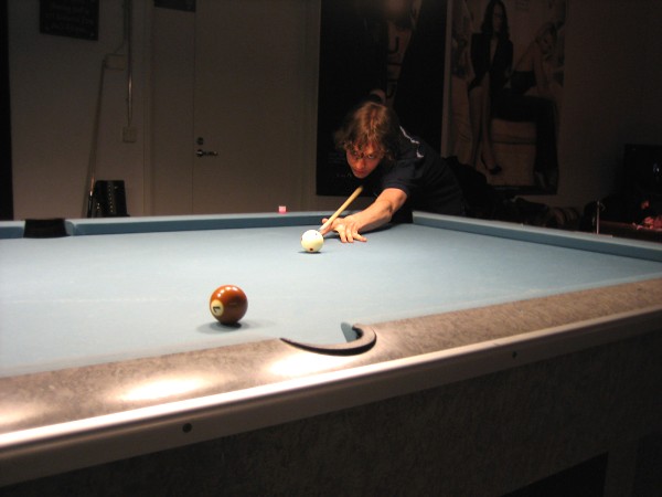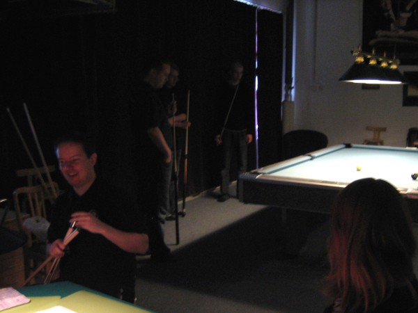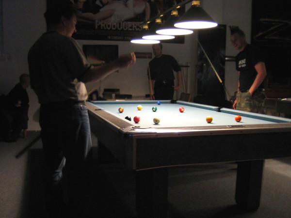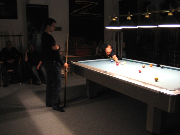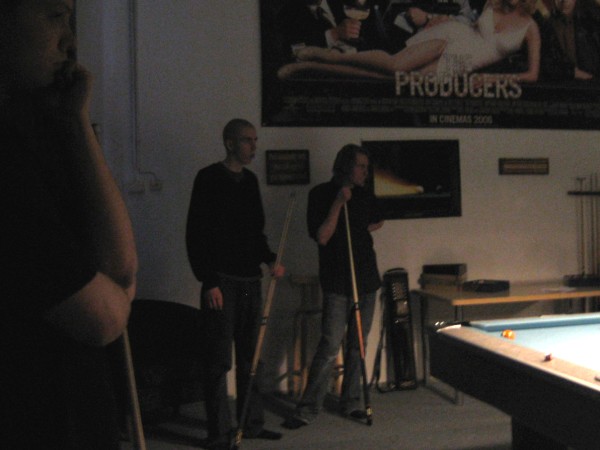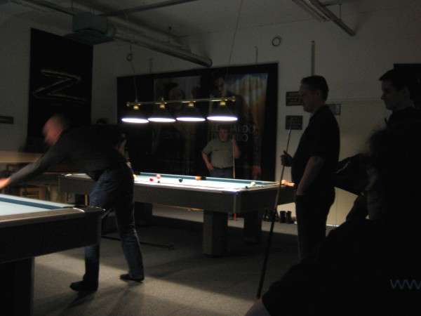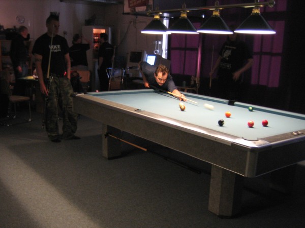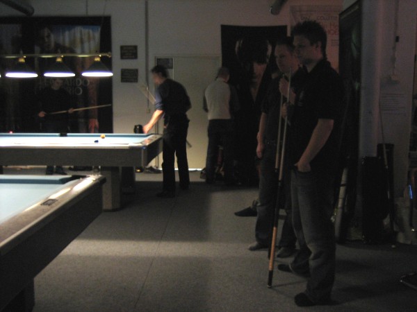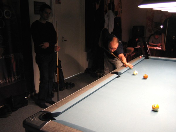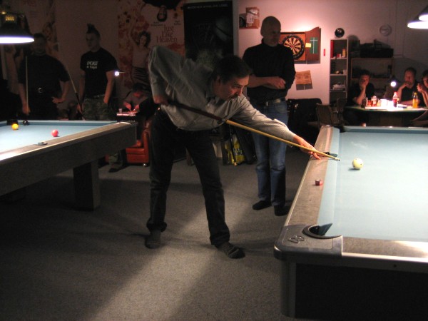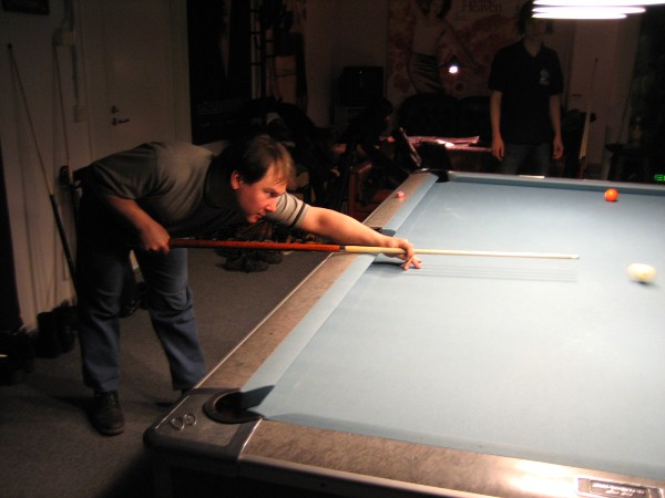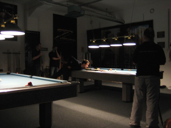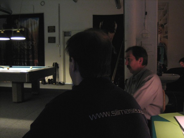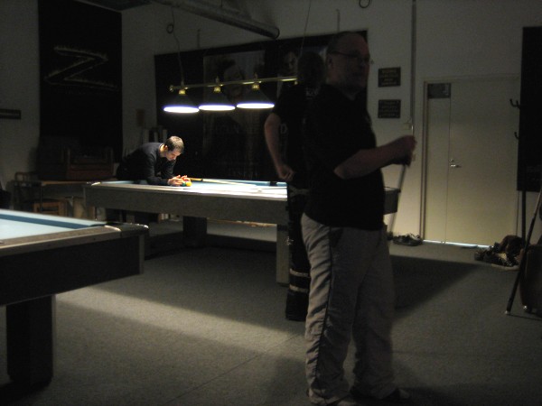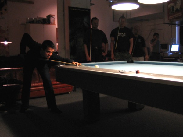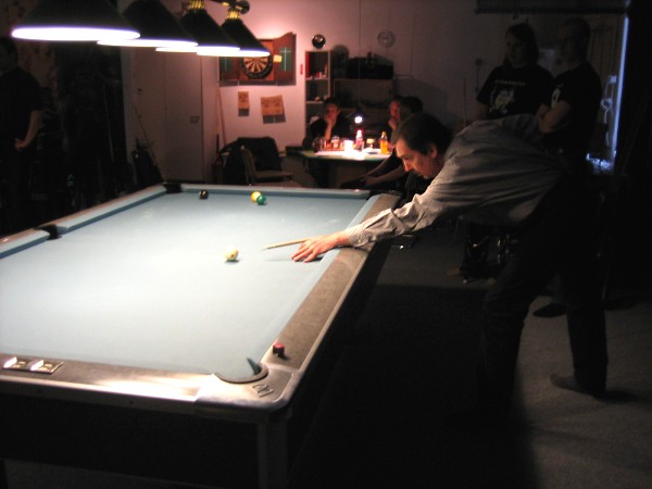 | Pisteysiä pitkään ja hartaasti pitkäperjantaina 10.04.2009Pyhäjärven Siimaseura ry:n jäsenmäärä kasvoi alkuvuonna 2009 kahteenkymmeneen. Siitäpä Mika Saloselle heräsikin ajatus, että olisi syytä järjestää biljarditapahtuma, jossa uudet jäsenet pääsisivät tutustumaan vanhoihin "siimalaisiin". Toisaalta Salosen oma hopeasijalla ja muutenkin hyvin alkanut kausi SBiL:n 1. divisioonassa oli jo aiemmin keskeytynyt monenmoisten vaivojen yms. myötä. Pirkanmaan mestaruuskisojakin oli jäänyt väliin. Siimaseuralle oli ehdottomasti saatava jotain piristävää vaihtelua. Mikan pääkopassa syntyi ajatus pisteysiparikisasta... Ei muuta kuin pareja kasaamaan...Uudet siimaseuralaiset Juha-Pekka ja Juuso Virtanen olivat heti kiinnostuneita. Heillä ei ollut aiempaa kilpailukokemusta ja toisaalta valtaosa siimaseuralaisista oli heille vielä tuntemattomia suuruuksia. Mika Salonen houkutteli parikseen ensimmäistä kauttaan Pirkanmaan 9-palloliigan 1. divisioonassa pelanneen Viljami Marjomäen. Etukäteen ilmoittautuneet kahdeksan paria pyrittiinkin muodostamaan niin, että enemmän pelannut pelasi kokemattomamman parina. Tällä tavalla pelaajat tulisivat toisilleen tutuiksi entistä paremmin ja kilpailusta kehkeytyisi tasaväkinen. Siimaseuralaisista mukaan ilmoittautuivat myös Timo Leskinen, Markus Palosaari, Antti Patronen, Tauno "Tane" Rajala, Sami Saariaho, Juho Saarikko ja Jani Ålander sekä ex-jäsen Teppo Klemetti. Vieraiksi kutsuttiin Juha Iloranta, Markku Kaakkomäki, Antti Karimaa ja Marko Salonen. Lisättäköön vielä, että Salosen veljekset olivat hiljattain täyttäneet 31 vuotta, joten tapahtuma toimi samalla myös eräänlaisena juhlana ja vuosi sitten järjestämättä jääneiden kolmekymppisten korvikkeena. Varsinaisen juhlinnan sijasta keskityttiin kuitenkin parikilpailuun. Pisteysiä härmäläläisittäinPitkäperjantain parikisassa pelattiin pisteysiä hieman sovelletuilla säännöillä. Sovelletuilla siinä mielessä, että Mika Salosen ja Jani Ålanderin voittaessa hopeaa Pirkanmaan pisteysiparikisoista vuonna 2006 käytössä olivat hieman erilaiset säännöt. Nyt käytetyistä säännöistä kiitos kuuluu Jari ja Tapio Kivipensaalle, joiden kanssa Mika on pelaillut tätä harvemmin pelattua pelimuotoa. Systeemin mukaan kaikki parit pelaisivat toisiaan vastaan kolme erää, joista laskettaisiin pisteet yhteen. Viitosesta sai pisteen, ysistä kaksi pistettä. Jos viitonen tai yhdeksikkö menivät pussiin ennen omaa vuoroaan, lensivät pöydältä tai pussitettiin foulilla, ne spotattiin pisteelle ja tarvittaessa vieläpä numerojärjestyksessä. Myös kolmella peräkkäisellä foulilla sai yhden pisteen, mutta kolmannen virheen jälkeen sen tehneen parin virhetili nollautui ja erä pelattiin loppuun normaalisti. Push out oli käytössä. Muuten säännöt olivat samat kuin 9-pallossa. Käytössä olivat myös tasoitukset. Juha-Pekka ja Juuso Virtanen saivat kaksi pistettä eteen kaikilta muilta kilpailuun osallistuneilta pareilta. Lisäksi ensimmäisen erän aloittaja teikattiin. Kuitenkin Virtasia vastaan pelattaessa vastustajapari aloitti aina ensimmäisen erän. Muut erät aloitti 9-pallon erän viimeisenä pallona pussittanut pari. Systeemin mukaisesti kilpailun voittaisi pari, joka keräisi eniten pisteitä pelaamistaan otteluista. Erävoitoilla ei ollut merkitystä. Jos esim. kolme paria keräsivät otteluissaan yhtä monta pistettä, verrattiin parien keskinäisiä otteluita. Jos ne menivät ristiin, katsottiin keskinäisten otteluiden eräsuhteita. Näin lähdettiin pelaamaan. Parit laskivat itse pisteensä. Lopusta huolehtivat kilpailunjohtaja Mika Salonen ja automatisoitu Excel-kaavio, jonka mies oli koodannut uusiksi kilpailua varten. Ottelut pakettiin - yhtä lukuun ottamatta...Kaksi pistettä alussa eteen saaneet Juha-Pekka ja Juuso Virtanen aloittivat kilpailun pelaamalla Sami Saariahoa ja Antti Patrosta vastaan. Lähtötilanne oli siis 2-0 Virtasille, mutta avauserän aloituksen saaneet Sami ja Antti voittivat kolmieräisen pisteysimittelön 8-6. Kakkospöydällä Marko Salonen ja Tauno "Tane" Rajala kukistivat Timo Leskisen ja Juha Ilorannan puhtaasti 10-0. Seuraavaksi Markus Palosaari ja Juho Saarikko aloittivat urakkansa. Vastassa olleet kutsuvieraat Markku "Plotka" Kaakkomäki ja Antti Karimaa keräsivät viisi pistettä kotipelaajien seitsemää vastaan. Oven vieressä Viljami Marjomäki ja Mika Salonen aloittivat niin ikään pirteästi. Viljami onnistui napsimaan bonuspisteitä ysikaralla kesken erän, joten Jani Ålanderia ja Teppo Klemettiä vastaan loppupisteiksi muotoitui 9-2. Siimaseuran Sami ja Antti jatkoivat pistetehtailua Juhan ja Timon kustannuksella. Kolmessa erässä pisteet jakautuivat 10-5. Joka tapauksessa Iloranta ja Leskinen saivat avattua pistetilinsä. Lisää pisteitä parille ropisi seuraavassa kolmieräisessä matsissa, jonka Siimaseuran Säätäjien Viljami Marjomäki ja Siimaseuran Säkittäjien Mika Salonen voittivat kuitenkin 6-3. Edellisiltana treenaamassa käyneet Tauno Rajala ja Marko Salonen kartuttivat pistetiliään kuudella pisteellä. Heidän vastustajansa Markus Palosaari ja Juho Saarikko keräsivät kolme pojoa. Virtasen veljekset J-P ja Juuso pistivät Kaakkomäkeä ja Karimaata vastaan pistepalloja pussiin sellaista tahtia, että 2-0:sta alkanut peli päättyi 10-4. Pistevoiton myötä alkujännitys alkoi karista. Pari pistettä keränneet Jani Ålander ja Teppo Klemetti kohtasivat seuraavaksi Sami Saariahon ja Antti Patrosen. Vastakkain olivat Siimaseuran Säkittäjien liigapelaajat sekä Siimaseuran Säätäjien entinen ja nykyinen pelaaja. Tepon ja Janin pistetahti pysyi samana. Pisteet menivät Samille ja Antille 9-2. Marko Salonen ja Tauno "Tane" Rajala jatkoivat vakuuttavia otteitaan, sillä nyt oli Antti Karimaan ja Markku Kaakkomäen vuoro kaatua 8-1 eli yhtä pistettä rikkaampina. Hyvin parina aloittaneet Mika ja Viljami joutuivat tunnustamaan Juhon ja Markuksen paremmuuden. 