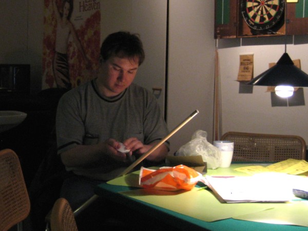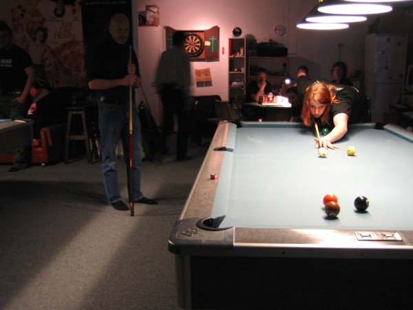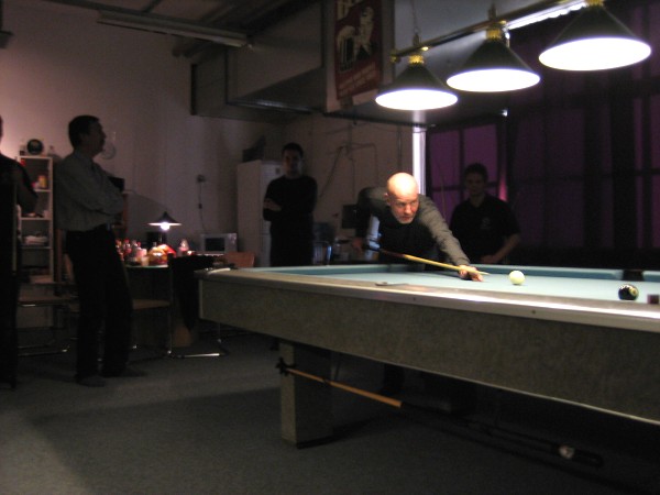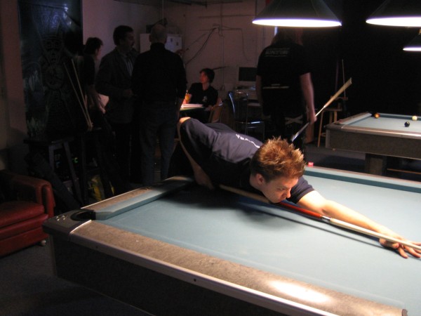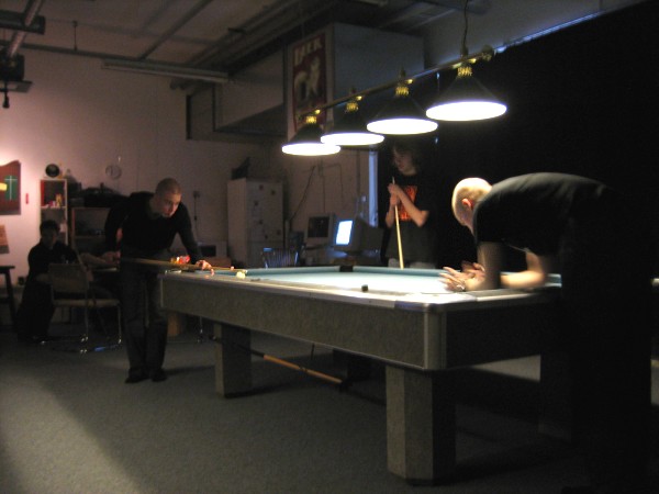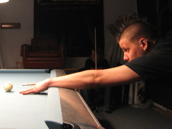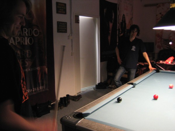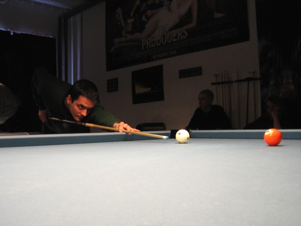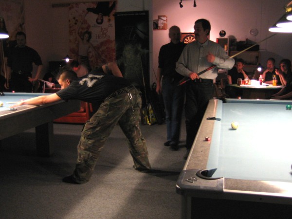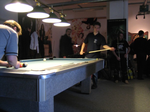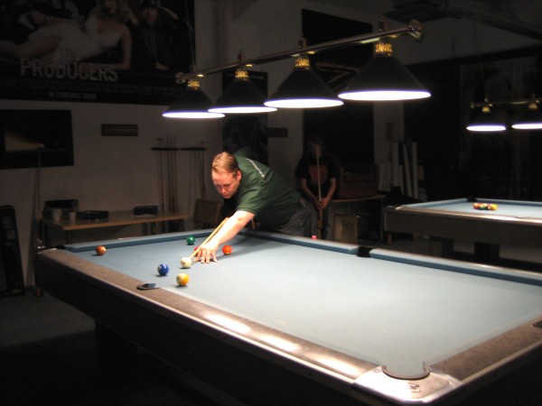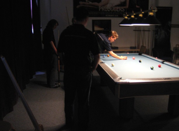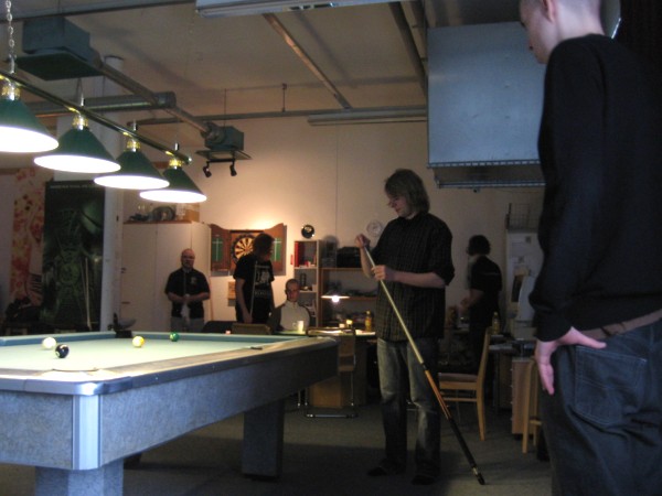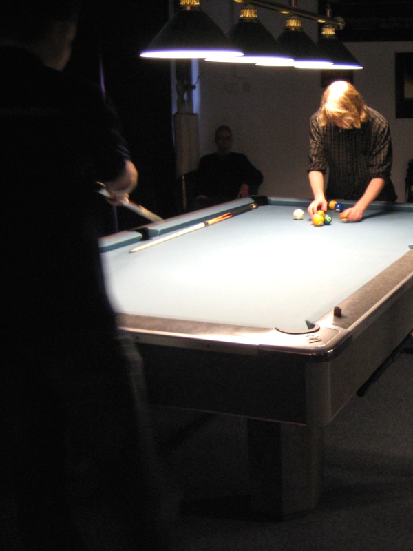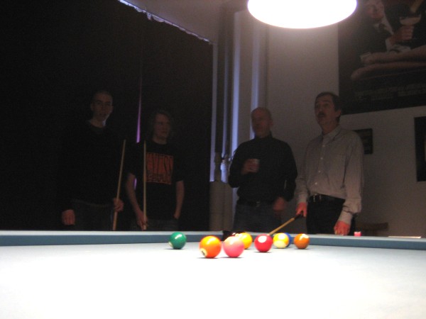 | Pisteysiä pitkään ja hartaasti pitkäperjantaina 10.04.2009Pyhäjärven Siimaseura ry:n jäsenmäärä kasvoi alkuvuonna 2009 kahteenkymmeneen. Siitäpä Mika Saloselle heräsikin ajatus, että olisi syytä järjestää biljarditapahtuma, jossa uudet jäsenet pääsisivät tutustumaan vanhoihin "siimalaisiin". Toisaalta Salosen oma hopeasijalla ja muutenkin hyvin alkanut kausi SBiL:n 1. divisioonassa oli jo aiemmin keskeytynyt monenmoisten vaivojen yms. myötä. Pirkanmaan mestaruuskisojakin oli jäänyt väliin. Siimaseuralle oli ehdottomasti saatava jotain piristävää vaihtelua. Mikan pääkopassa syntyi ajatus pisteysiparikisasta... Ei muuta kuin pareja kasaamaan...Uudet siimaseuralaiset Juha-Pekka ja Juuso Virtanen olivat heti kiinnostuneita. Heillä ei ollut aiempaa kilpailukokemusta ja toisaalta valtaosa siimaseuralaisista oli heille vielä tuntemattomia suuruuksia. Mika Salonen houkutteli parikseen ensimmäistä kauttaan Pirkanmaan 9-palloliigan 1. divisioonassa pelanneen Viljami Marjomäen. Etukäteen ilmoittautuneet kahdeksan paria pyrittiinkin muodostamaan niin, että enemmän pelannut pelasi kokemattomamman parina. Tällä tavalla pelaajat tulisivat toisilleen tutuiksi entistä paremmin ja kilpailusta kehkeytyisi tasaväkinen. Siimaseuralaisista mukaan ilmoittautuivat myös Timo Leskinen, Markus Palosaari, Antti Patronen, Tauno "Tane" Rajala, Sami Saariaho, Juho Saarikko ja Jani Ålander sekä ex-jäsen Teppo Klemetti. Vieraiksi kutsuttiin Juha Iloranta, Markku Kaakkomäki, Antti Karimaa ja Marko Salonen. Lisättäköön vielä, että Salosen veljekset olivat hiljattain täyttäneet 31 vuotta, joten tapahtuma toimi samalla myös eräänlaisena juhlana ja vuosi sitten järjestämättä jääneiden kolmekymppisten korvikkeena. Varsinaisen juhlinnan sijasta keskityttiin kuitenkin parikilpailuun. Pisteysiä härmäläläisittäinPitkäperjantain parikisassa pelattiin pisteysiä hieman sovelletuilla säännöillä. Sovelletuilla siinä mielessä, että Mika Salosen ja Jani Ålanderin voittaessa hopeaa Pirkanmaan pisteysiparikisoista vuonna 2006 käytössä olivat hieman erilaiset säännöt. Nyt käytetyistä säännöistä kiitos kuuluu Jari ja Tapio Kivipensaalle, joiden kanssa Mika on pelaillut tätä harvemmin pelattua pelimuotoa. Systeemin mukaan kaikki parit pelaisivat toisiaan vastaan kolme erää, joista laskettaisiin pisteet yhteen. Viitosesta sai pisteen, ysistä kaksi pistettä. Jos viitonen tai yhdeksikkö menivät pussiin ennen omaa vuoroaan, lensivät pöydältä tai pussitettiin foulilla, ne spotattiin pisteelle ja tarvittaessa vieläpä numerojärjestyksessä. Myös kolmella peräkkäisellä foulilla sai yhden pisteen, mutta kolmannen virheen jälkeen sen tehneen parin virhetili nollautui ja erä pelattiin loppuun normaalisti. Push out oli käytössä. Muuten säännöt olivat samat kuin 9-pallossa. Käytössä olivat myös tasoitukset. Juha-Pekka ja Juuso Virtanen saivat kaksi pistettä eteen kaikilta muilta kilpailuun osallistuneilta pareilta. Lisäksi ensimmäisen erän aloittaja teikattiin. Kuitenkin Virtasia vastaan pelattaessa vastustajapari aloitti aina ensimmäisen erän. Muut erät aloitti 9-pallon erän viimeisenä pallona pussittanut pari. Systeemin mukaisesti kilpailun voittaisi pari, joka keräisi eniten pisteitä pelaamistaan otteluista. Erävoitoilla ei ollut merkitystä. Jos esim. kolme paria keräsivät otteluissaan yhtä monta pistettä, verrattiin parien keskinäisiä otteluita. Jos ne menivät ristiin, katsottiin keskinäisten otteluiden eräsuhteita. Näin lähdettiin pelaamaan. Parit laskivat itse pisteensä. Lopusta huolehtivat kilpailunjohtaja Mika Salonen ja automatisoitu Excel-kaavio, jonka mies oli koodannut uusiksi kilpailua varten. Ottelut pakettiin - yhtä lukuun ottamatta...Kaksi pistettä alussa eteen saaneet Juha-Pekka ja Juuso Virtanen aloittivat kilpailun pelaamalla Sami Saariahoa ja Antti Patrosta vastaan. Lähtötilanne oli siis 2-0 Virtasille, mutta avauserän aloituksen saaneet Sami ja Antti voittivat kolmieräisen pisteysimittelön 8-6. Kakkospöydällä Marko Salonen ja Tauno "Tane" Rajala kukistivat Timo Leskisen ja Juha Ilorannan puhtaasti 10-0. Seuraavaksi Markus Palosaari ja Juho Saarikko aloittivat urakkansa. Vastassa olleet kutsuvieraat Markku "Plotka" Kaakkomäki ja Antti Karimaa keräsivät viisi pistettä kotipelaajien seitsemää vastaan. Oven vieressä Viljami Marjomäki ja Mika Salonen aloittivat niin ikään pirteästi. Viljami onnistui napsimaan bonuspisteitä ysikaralla kesken erän, joten Jani Ålanderia ja Teppo Klemettiä vastaan loppupisteiksi muotoitui 9-2. Siimaseuran Sami ja Antti jatkoivat pistetehtailua Juhan ja Timon kustannuksella. Kolmessa erässä pisteet jakautuivat 10-5. Joka tapauksessa Iloranta ja Leskinen saivat avattua pistetilinsä. Lisää pisteitä parille ropisi seuraavassa kolmieräisessä matsissa, jonka Siimaseuran Säätäjien Viljami Marjomäki ja Siimaseuran Säkittäjien Mika Salonen voittivat kuitenkin 6-3. Edellisiltana treenaamassa käyneet Tauno Rajala ja Marko Salonen kartuttivat pistetiliään kuudella pisteellä. Heidän vastustajansa Markus Palosaari ja Juho Saarikko keräsivät kolme pojoa. Virtasen veljekset J-P ja Juuso pistivät Kaakkomäkeä ja Karimaata vastaan pistepalloja pussiin sellaista tahtia, että 2-0:sta alkanut peli päättyi 10-4. Pistevoiton myötä alkujännitys alkoi karista. Pari pistettä keränneet Jani Ålander ja Teppo Klemetti kohtasivat seuraavaksi Sami Saariahon ja Antti Patrosen. Vastakkain olivat Siimaseuran Säkittäjien liigapelaajat sekä Siimaseuran Säätäjien entinen ja nykyinen pelaaja. Tepon ja Janin pistetahti pysyi samana. Pisteet menivät Samille ja Antille 9-2. Marko Salonen ja Tauno "Tane" Rajala jatkoivat vakuuttavia otteitaan, sillä nyt oli Antti Karimaan ja Markku Kaakkomäen vuoro kaatua 8-1 eli yhtä pistettä rikkaampina. Hyvin parina aloittaneet Mika ja Viljami joutuivat tunnustamaan Juhon ja Markuksen paremmuuden. 