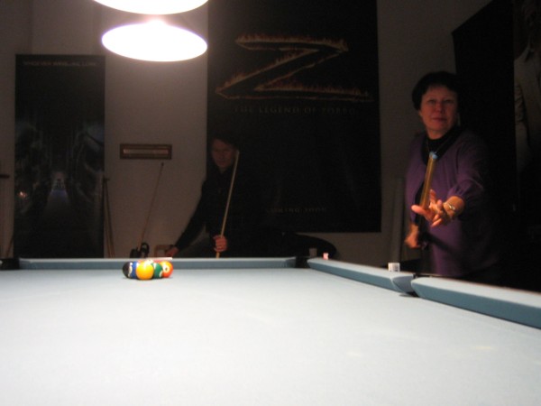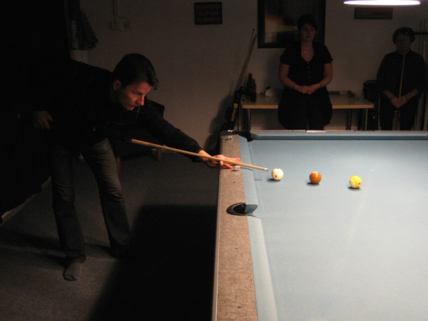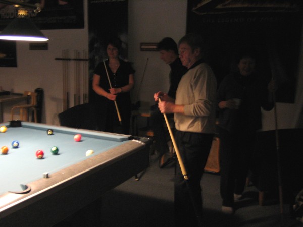 | Vuodenvaihtajaiset 31.12.2009Pyhäjärven Siimaseura ry:n kotisali, joka kantaa luonnollisesti nimeä Pyhäjärven Siimaseura, perustettiin vuonna 2005. Hallituksen kokouksessa päätettiin, että vuoteen 2010 ja uudelle vuosikymmenelle siirtymistä juhlitaan parikilpailun merkeissä 31.12.2009. Samalla juhlistettiin pelipaikan viisivuotista olemassaoloa jo hieman etuajassa, sillä vuokrasopimus allekirjoitettiin tarkkaan ottaen 22.04.2005. Pelipaikan perustaneiden Olli Järvisen, Timo Leskisen, Arja Lintusen, Pekka Mannisen, Sami Saariahon ja Mika Salosen lisäksi kutsuttujen listalla olivat mm. kaikki Pyhäjärven Siimaseura ry:n jäsenet ja postituslistalaiset sekä joukko tuttuja tamperelaispelaajia aveceineen. Yksi kutsu lähti myös ulkomaille, mutta lopulta kaukaisimmat vieraat tulivat kuitenkin Ilmajoelta. 9-palloilun lomassa ruokaa ja rakettejaIltakuudelta pistettiin alulle leikkimielinen 9-pallon parikisa. Kaikki kuusi paria pelasivat kertaalleen vastakkain, minkä jälkeen kaksi parasta pelasivat finaalin. Kilpailun ollessa todella tasaväkinen heräsi kesken kaiken ajatus jumbofinaalista, joten sellainenkin kuului illan kattaukseen. Maittavaa ruokaa oli myös tarjolla - kiitos mestarikokki Sami Saariahon ja apukokki Marja Lindénin. Syömisen lomassa, tasoituksin pelatussa biljardin parikilpailussa oli kolme sekaparia ja kolme ns. härkäparia. Ilmajokiset Tuula Mäkelä ja Tuomo Sirniö, Marika Korpela ja Janne Forsman sekä Leenan kanssa pelannut Matti "Masa" Järvinen pelasivat ykkösen tasoituksella. Kolmesta muusta sekaparista poiketen Marja Lindén ja Mika Salonen, joka toimi kilpailunjohtajana ja teki comebackin biljardikentille entistä ehompana, pelasivat nollan tasoituksella. Nollalla pelailivat myös härkäparit Teppo Klemetti ja Sami Saariaho sekä Tauno "Tane" Rajala ja Marko Salonen. Kilpailusta kehkeytyi yksi kaikkien aikojen tasaisimmista. Kun Marja Lindén ja Mika Salonen voittivat viimeisessä pelissään Teppo Klemetin ja Sami Saariahon 2-0, Mika ja hänen lyömäänsä pitkää, ei salettia ykkösen ysikyytiä jo pitkään ennen lyöntiä tuulettanut Marja voittivat alkupelit. Toiseksi tulleet Teppo ja Sami saivat finaalissa revanssin ja voittivat sen puhtaasti 3-0, kun Sami tempaisi ysikyydin neljän vallin kautta kulmaan... Onnekas lyönti mykisti Teponkin. Voittolyönnin nähnyt "Tane", joka sijoittui Markon kanssa kolmanneksi, alkoi heti hioa omia kyydityksiään... Kärkikaksikko ei ollut mitenkään ylivoimainen vaan tasoituksista riippuen joko kahteen tai kolmeen erävoittoon pelatut pelit menivät usein kontraan saakka. Esim. Tuulan otteet olivat ajoittain sellaisia, että pari olisi hyvinkin voinut pelata nollan tasoituksella. Tuomon isännöimällä kaksikolla oli kuitenkin pientä epäonnea. Leena ja "Masa", uusin siimaseuralainen, höntsäilivät rennolla asenteella, pääsivät vauhtiin kilpailun edetessä ja ylsivät kunnon voittoputkeen kilpailun päätteeksi. Marika ja Janne pelasivat ilmiselvästi kolmella tai jopa useammalla kahta vastaan ja kyselivät, milloin Siimaseuralla järjestetään seuraavat parikisat. Pelailu maittoi heillekin. Vuosi ja vuosikymmen vaihtuivat Marjan ja Tuulan pistäessä ukkoja pakantekoon sekä pelikavereihin tutustumisen merkeissä. Kerrattiin Siimaseuran syntyvaiheita ja sitä, miten pelipaikan perustajat olivat päätyneet saman katon alle. Ei unohdettu myöskään hyvää ruokaa ja juomaa. Rakettejakin tiirailtiin. Hauskaa oli, joten kiitoksia kaikille!