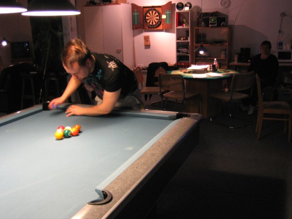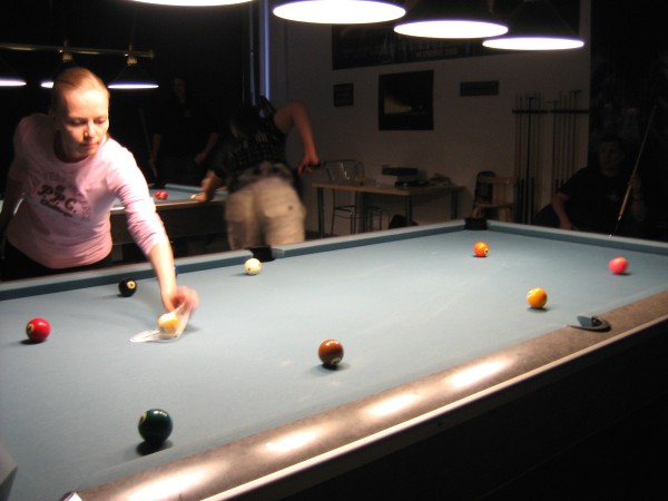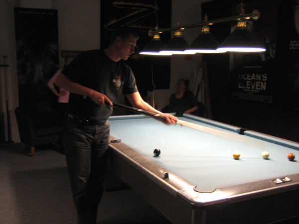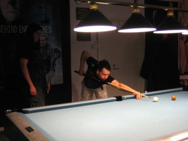 Ainoana parina nollan tasoituksella pelasivat Marja Lindén ja Mika Salonen, joiden osallistuminen oli viimeiseen saakka epävarmaa sairasteluista johtuen. Pirkanmaan Pool-liigan mestaruusarjan Siimaseuran Säkittäjissä vasta viisi ottelua kaudella pelannut Mika oli muutenkin pelannut vähänlaisesti. Marja oli käynyt ulkomailla saakka hakemassa pelifiilistä, joten tuttu parivaljakko antoi muille eteen vähintään kaksi pistettä. Lähtökohtiin nähden homma toimi ja hauskaa oli! Kuten jo tuli kerrottua, kolmanneksi sijoittuneet Marika Korpela ja Siimaseuran Säkittäjien Janne Forsman jäivät niukasti finaalipaikasta. Nelosen tasoituksella kilpailuun osallistunut pari napsi pisteitä tasaiseen tahtiin. Tosin Jannen mukaan avaus- ja päätöskamppailu menivät hieman alakanttiin ja veivät finaalipaikan. Hienoa, että Janne ja Marika olivat mukana, vaikka perheen tuleva pienokainen potkikin jo tahtia masussa... Kilpailussa neljänneksi tulivat Sanna Mustonen, Juha Ilorannan