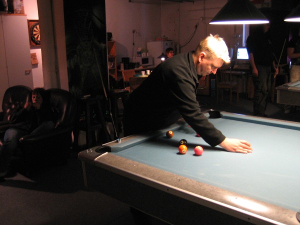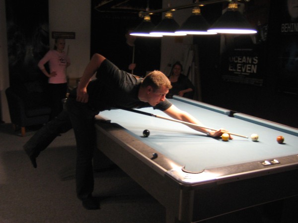 Nuoret virtuoosit Teemu Miskala ja Markus Palosaari, jotka edustavat liigassa 2. divisioonan Siimaseuran Sankareita, pelasivat rennosti parina ja kolmosen tasoituksella. "Make" löi neljästi ysin ja kiven, mikä harmitti. Kannustusjoukoissa tämän totesivat Tytti Korhonen ja Tuija Mähönen. Alkulohkon, loppuottelun ja koko kilpailun voiton veivät hyvin yhteen pelanneet Juha "Ikke" Iloranta ja Tauno "Magic Man" Rajala, jonka piti alun perin pelata ykkösen tasoituksella Teppo Klemetin parina. Onnittelut pisteysimestareille ja kiitos kaikille! Statistiikkaa tilastonikkareilleMainittakoon vielä, että alkulohkossa pelattiin yhteensä kymmenen ottelua ja 40 erää, joissa tehtiin 202 pistettä. Jos tasoituksia ei huomioida, pisteitä tehtailtiin 154 eli 15,4 pistettä ottelua kohti. Tällöin erää kohden pisteitä naputeltiin 3,85. Vain Marja ja Mika hankkivat pisteen turvapelillä. Juhan ja "Tanen" tasoitukseton pistesuhde 38-22 oli toiseksi paras, kun taas paras tasoitukseton pistesuhde neljässä ottelussa oli Marjan ja Mikan 44-14. Marikan ja Jannen suhde oli 28-34, Sannan ja Pekan 28-33 sekä Teemun ja Markuksen 16-51. Kuten oikean laidan tasoituksellisista tuloksista näkyy, tasoitukset eivät juurikaan vaikuttaneet lopputuloksiin, mutta toivat reilusti lisäjännitettä. Alkupelien viimeinen lyönti - Marjan pussittama yhdeksikkö - ratkaisi finalistit. Jännittävämmäksi ei voi enää mennä, joten tasoituksia käytetään varmasti jatkossakin pisteysiä pelattaessa.