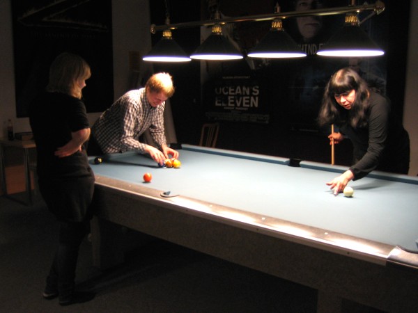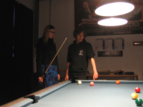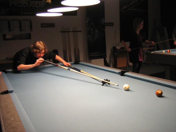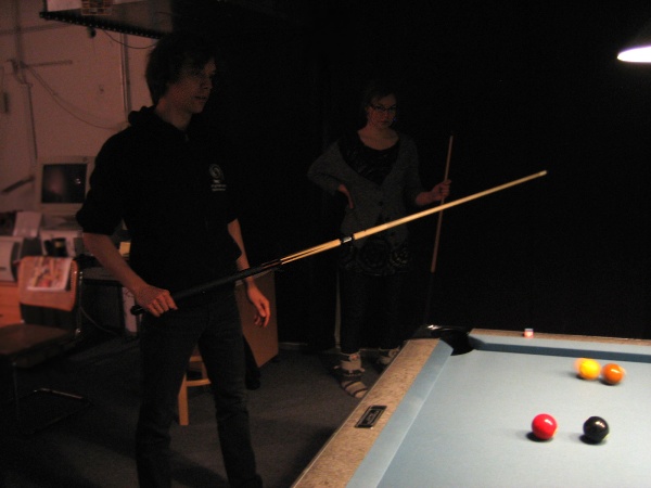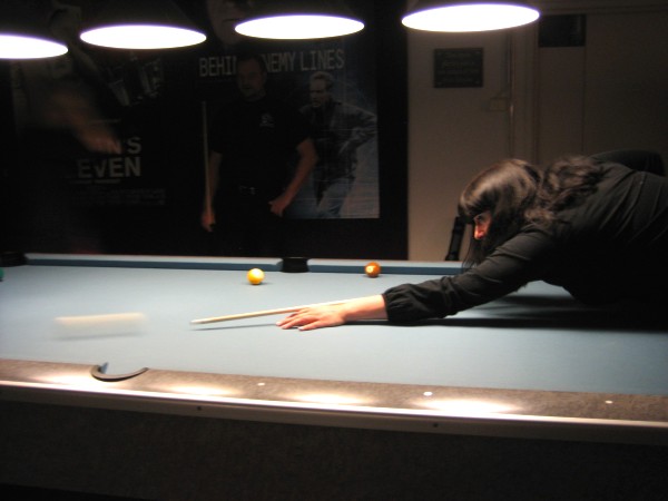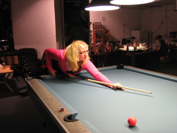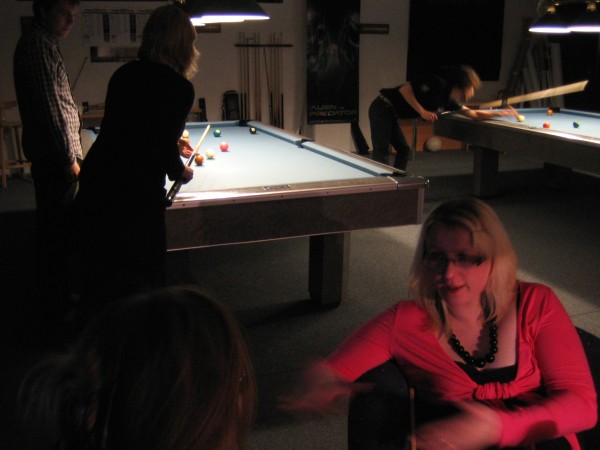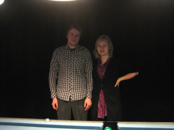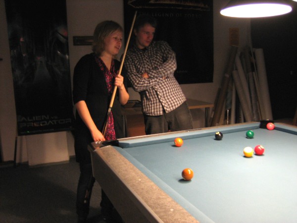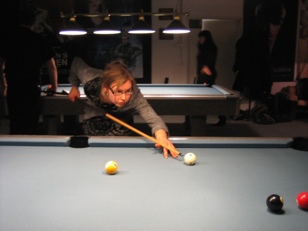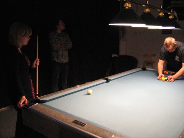 | Siimaseuran vedenpaisumuksen jälkimainingeissa 26.02.2011Pyhäjärven Siimaseura, Pyhäjärven Siimaseura ry:n biljarditila, koki kovia vuodenvaihteessa 2010-2011. Timo Leskinen postitti 03.01.2011 yhdistyksen jäsenille, että pelitilassa oli sattunut vesivahinko. Tuhoista ei ollut vielä tarkkaa tietoa, mutta irtaimiston lisäksi uumoiltiin seinien kärsineen ja valmistauduttiin niiden uusimiseen. Vuoden 2011 alkuun suunniteltu täysimittainen pöytäremontti, jonka oli määrä sisältää mm. pelipöytien vaa'ituksen, veranvaihdon, pussien pienentämisen ja vallikumien fiksauksen, siirtyi. Liigajoukkueista Siimaseuran Sankarit oli lähtenyt evakkoon Ravintola Booliin ja Siimaseuran Säätäjät puolestaan naapurisali Reilukerhoon. Pelipaikoille suurkiitokset vieraanvaraisuudesta! Kun Siimaseuran pelipaikka saatiin kuivatettua, vahingot tarkastettua ja pöytäremontti valmiiksi, elettiin jo helmikuuta 2011. Onneksi vesivahingon tuhot eivät olleetkaan pelätynlaiset vaan odottamattomassa vedenpaisumuksessa oli onni matkassa. Vielä riitti kunnostamista, mutta koska Timo Leskisen ja Olli Järvisen antaumuksella kunnostamat pelipöydät loistivat jo komeina, päätettiin kisata ensi kertaa vuoden 2011 puolella. Vedestä viis, 9-palloa pareittain siis...Onnellisen perhetapahtuman vuoksi nykyinen tapahtumavastaava Markus Palosaari ei ollut puikoissa lauantaina 26.02.2011, jolloin 9-pallon parikilpailuun saapui viisi paria. Markusta tuurasi Mika Salonen, joka lätkäisi parit Resulttia Solutionsin Excel-kilpailukaavioon ja laittoi pelit käyntiin. Pelattiin ilman tasoituksia. Ensimmäistä kertaa mukana oli ainostaan sekapareja. Hyvissä olosuhteissa käytyyn kilpailuun osallistui mielenkiintoisia nimiä. Juha-Pekka Virtasen parina palloja aina finaaliin ja kisavoittoon asti pussitellut Sanni Saari kisasi hienosti koko päivän. Maiju Kangasniemi, joka pelasi Mika Salosen kanssa, oli vasta neljättä kertaa tositoimissa biljardipöydän äärellä ja ensi kertaa kisamielellä. Timo Leskisen ja Minna Sorrin, kuten myös Janne Forsmanin ja Marika Korpelan sekä Viljami Marjomäen ja Maija Pienräihän, parityöskentelyä on nähty kisoissa aiemminkin ja nyt sitä nähtiin taas hieman lisää. Alkupeleissä Minna Sorri ja Timo Leskinen olivat muita etevämpiä voittaen neljästä ottelustaan kolme. Kaksi viimeistä peliään 3-0 voittanut parivaljakko Maiju Kangasniemi ja Mika Salonen oli ainoa Minnan ja Timon alkulohkossa kaatanut pari ja sijoittui lopputuloksissa neljänneksi. Marika Korpela ja Janne Forsman pelasivat sijalle viisi. Niukasti keskinäisen ottelun turvin kolmanneksi sijoittui pari Maija Pienräihä ja Viljami Marjomäki. Finaalissa Minnaa ja Timoa vastaan asettuivat Sanni Saari ja Juha-Pekka Virtanen, jotka hoitelivat kisavoiton nimiinsä lukemin 0-3. Tämä taisikin olla J-P:n ensimmäinen kilpailuvoitto. Tapahtuma sujui kokonaisuudessaan loistavasti. Sen sai aistia myös Juuso Järventie, joka saapui nauttimaan fiiliksestä ja ruokapöydän maittavista antimista. Ilahduttavaa oli nähdä ensikertalaisia kisailemassa ja aitoa iloa onnistumisten hetkillä. Ehkäpä unelma Pyhäjärven Siimaseura ry:n omasta naisjoukkueesta on taas askeleen lähempänä toteutumistaan. Kiitos Timolle ja Ollille pöytäremontista, Minnalle ruokapuolesta ja kaikille mukana olleille mukavasta biljardipäivästä! Parikilpailun myötä biljardipyhättö Pyhäjärven Siimaseuran ovet ovat jälleen avoinna ja puitteet sekä biljardista että yhdessäolosta nauttimiseen ovat ensiluokkaiset.
