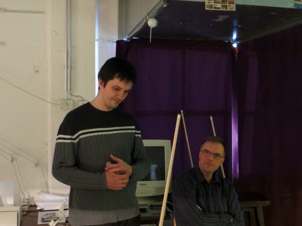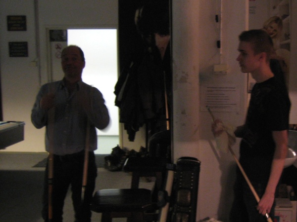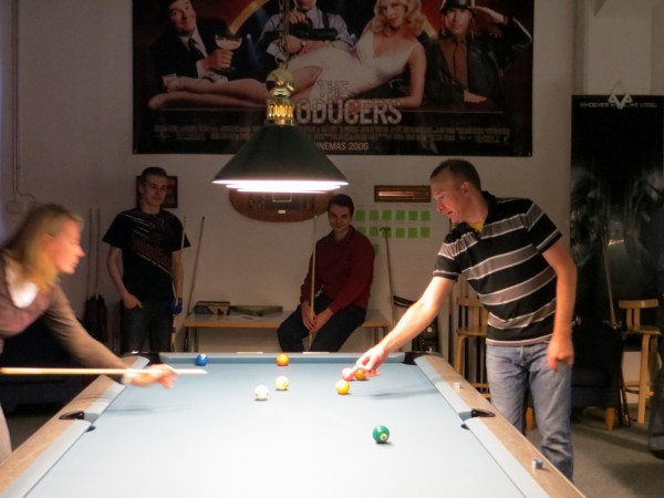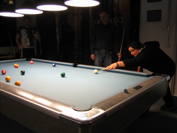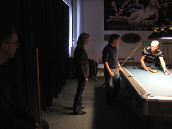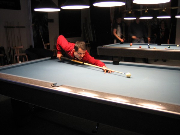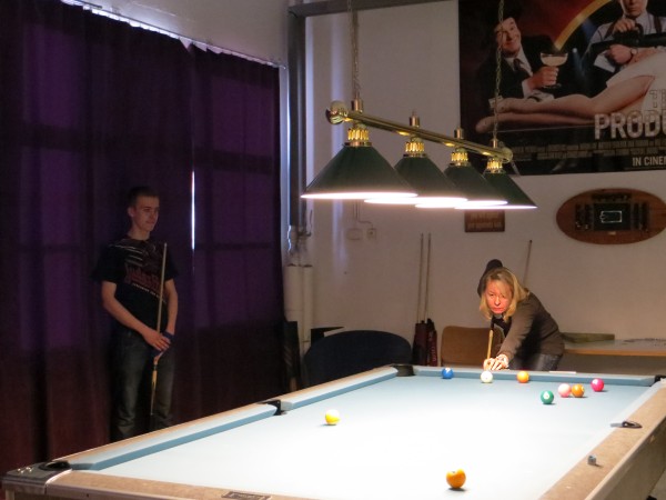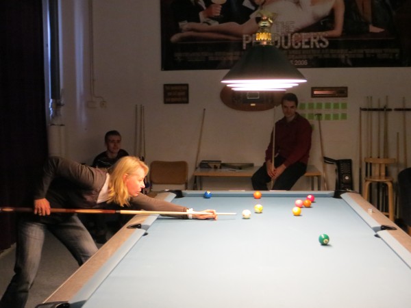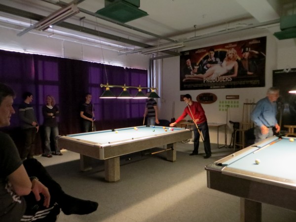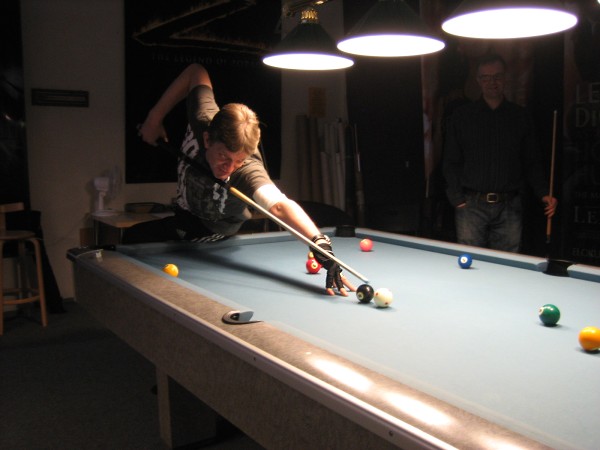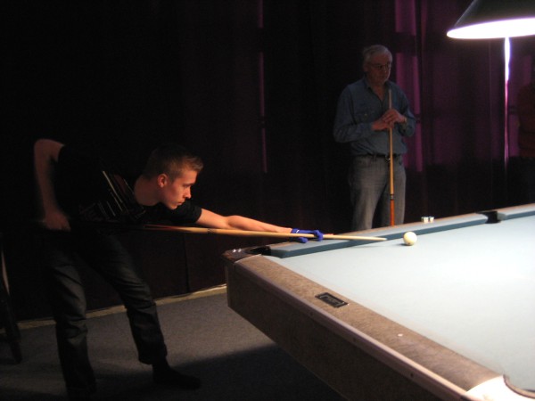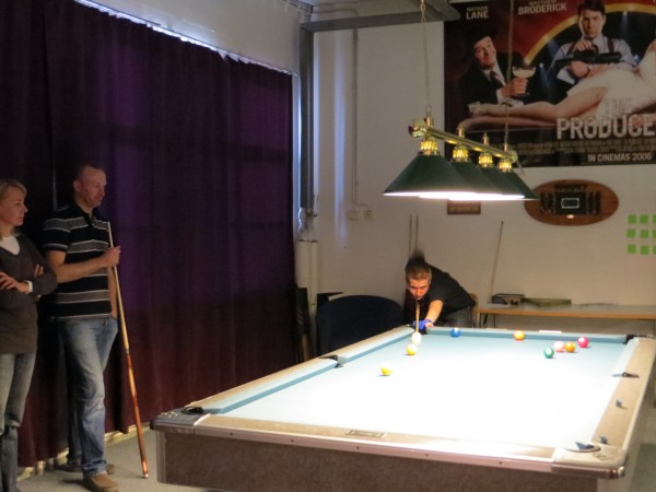 | Viidentoista pääsiäisbiljardöörin pisteysiparikisailu 29.03.2013Jaa'a, pitäisiköhän keksiä mukavaa kisailua pääsiäiseksi... Siitä se ajatus pisteysiparikisasta sitten taas kerran lähti. Pitkäperjantaina 29.03.2013 Pyhäjärven Siimaseuran ovesta marssi sisään pariton määrä biljardöörejä, mutta parikisa saatiin kuitenkin aikaiseksi. Ja huh, kylläpä olikin tasaväkistä porukkaa liikenteessä näin pääsiäisenä! 42 erän jälkeen kolme paria lähes tasoissaSiimaseuran uunituore jäsen Kimmo Loppela sai pelata ilman paria. Esa Niemisellä oli kaverina Jari Kivipensas, kokenut pisteysipelaaja. Talviot muodostivat parin, kuten myös Walkerit. Maiju Kangasniemen parina pistepalloja metsästi kisavetäjä Mika Salonen. Janne Forsman pelasi vieraisille saapuneen Risto Kukkolan kanssa. Marko Salonen saapui myös vieraaksi ja otti mukaansa Samuli Mattilan, joka oli tähän saakka pelannut lähinnä Tampereen junnubilisliigaa. Pisteysiä kun kerran pelattiin, niin ysistä sai kaksi pistettä, viitosesta pisteen ja myös vastustajien kolmesta peräkkäisestä virheestä pistepotti kasvoi yhdellä. Alkusarjassa pelattiin kaksi erää ja laskettiin niistä pisteet. Finaalissa eriä oli kolme. 42 erää ja 152 tehtyä pistettä myöhemmin finalistit olivat selvillä. Ennakkosuosikit Samuli Mattila ja Marko Salonen pitivät alkusarjassa pintansa ja voittivat sen, vaikka Loppelan Kimmo heidät kukistikin. Samoin veljesten välinen vääntö meni Mikan ja peliparinsa Maijun nimiin. Niin tai näin, Samuli ja "Make" tekivät alkupeleissään yhteensä 32 pistettä ja olivat ylivoimaisia. 25 pistettä tehtaillut Kimmo pääsi alkusarjan toisen sijan myötä finaaliin, mutta kolmieräinen koitos päättyi Mattilalle ja Saloselle 5-4. Kimmo oli toinen, kun taas Maiju ja Mika olivat kolmansia. Neljäs, viides ja kuudes pari pelasivat kovin tasaisesti. Lopulta neljänsiä olivat Talviot Riitta ja Kai, viidensiä Walkerit Sirpa ja Richard sekä kuudensia Esa ja Jari. Talviot voittivat Esan ja Jarin sekä pelasivat Walkereiden kanssa tasan. Walkerit vetivät tasan myös Esan ja Jarin kanssa, joten viimeksi mainitut laitettiin lopputuloksissa sijalle kuusi. Janne ja Risto olivat seuraavia. Onnittelut pisteysimestareille ja kiitos kaikille mukavasta pääsiäiskisasta!