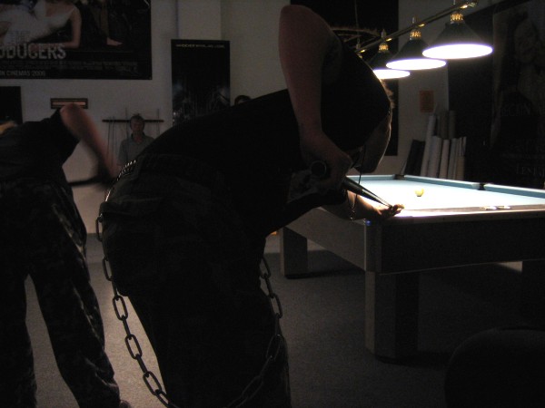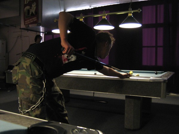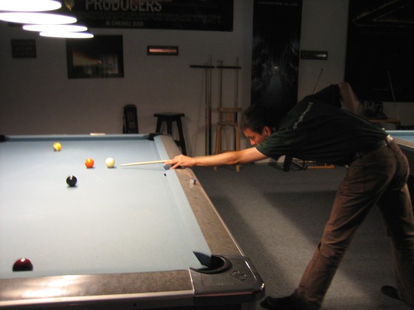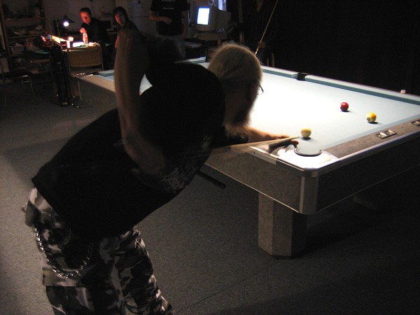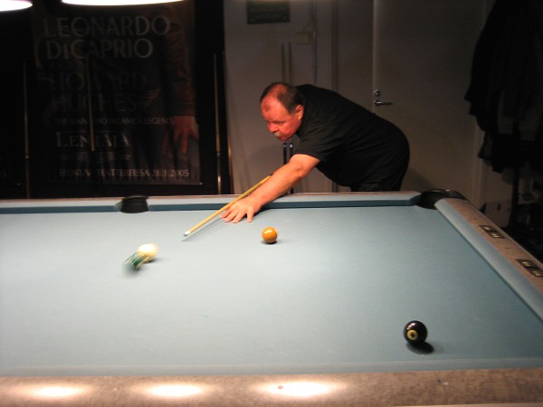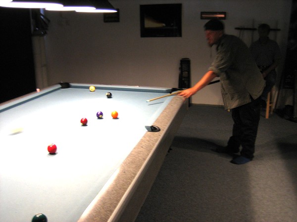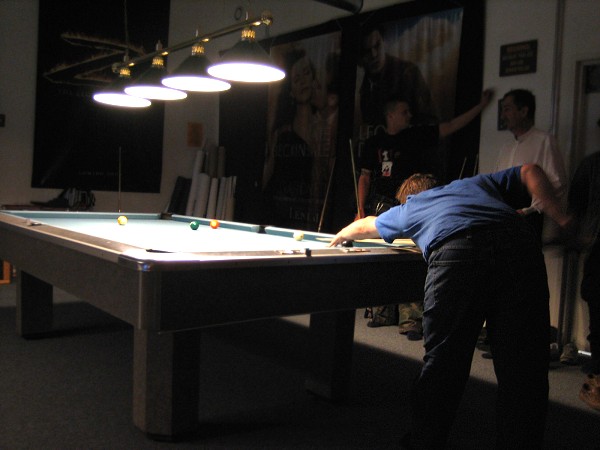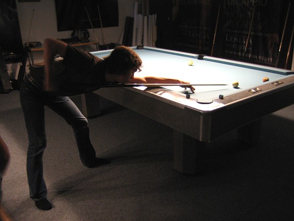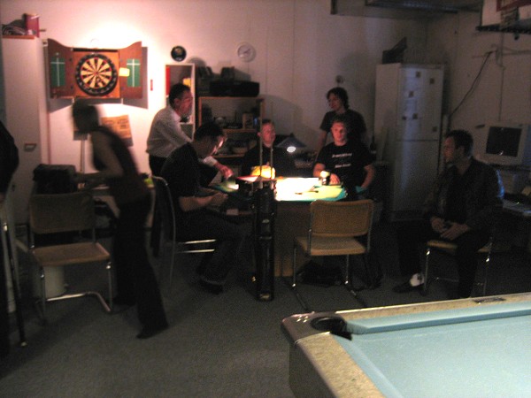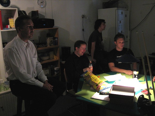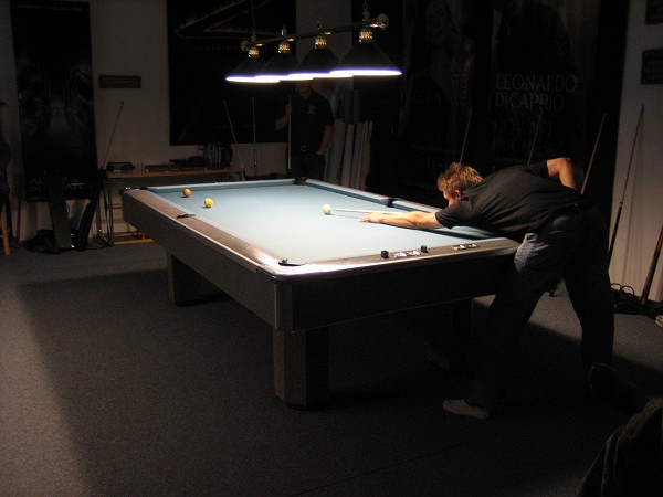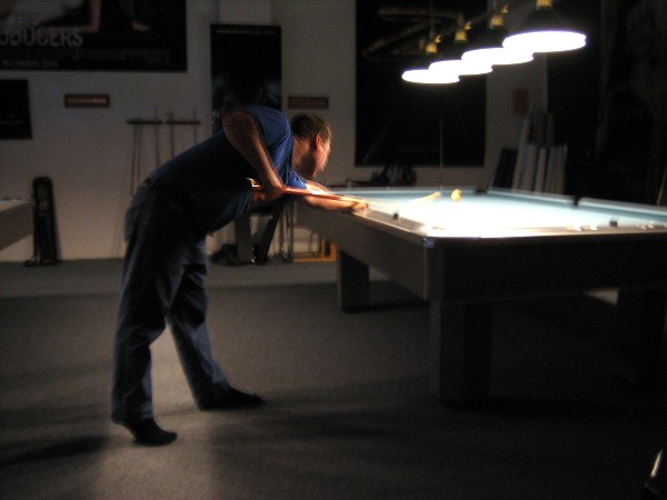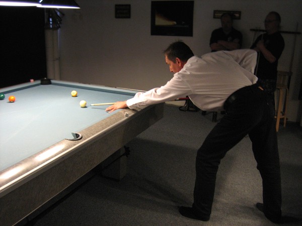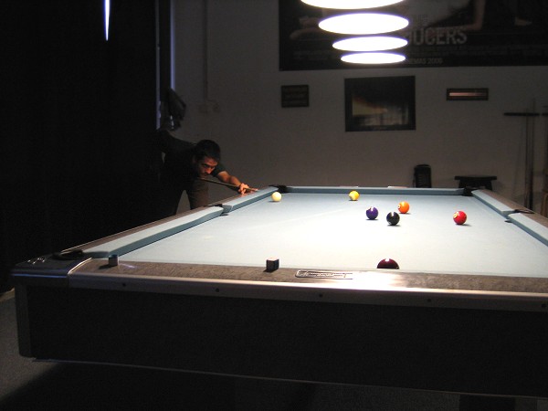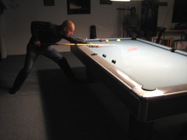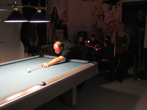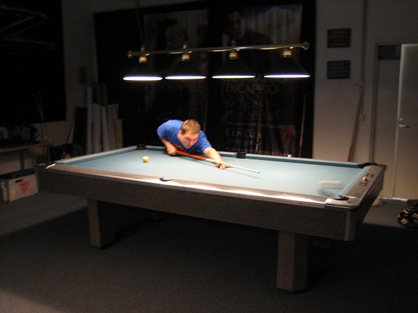 | Säkittäjien, Säätäjien ja PB Dieselin kolmiottelu 23.08.2008Pyhäjärven Siimaseura ry:hyn liittyi kesän 2008 aikana niin monta uutta jäsentä, että kisaisäntä Mika Saloselle syntyi väistämättä ajatus kolmiottelun järjestämisestä. Päivämääräkin sen jo kertoi, ettei kahta joukkuetta ilman kolmatta... Niinpä Pyynikille kutsuttiin 2. divisioonakauteen 2008-2009 valmistautunut PB Diesel, jota vastaan asettuivat Siimaseuran omat liigajoukkueet. Kotijoukkueet Siimaseuran Säkittäjät ja Siimaseuran Säätäjät saivat jalkeille viisi pelaajaa. Koska PB Dieselillä oli seitsemän pelaajaa, kussakin ottelussa pelattiin seitsemän peliä, jotta kaikki dieseliläiset saivat pelata kaksi peliä päivän aikana. Joillekin Säkittäjien ja Säätäjien pelaajille tuli arvonnan tuloksena kaksi pelivuoroa yhdessä ottelussa. Ystävyysotteluissa pelattiin 9-palloa viiteen erävoittoon Pirkanmaan liigan sarjatasojen mukaisesti määräytyvillä tasoituksilla. Ensimmäisen erän aloitti aina pelaaja, joka joutui antamaan eteen. Muuten mentiin normaaleilla liigasäännöillä, mutta neuvominen oli sallittua ja jopa toivottavaa. Oheiset pöytäkirjat eivät kuitenkaan kerro todellista pelijärjestystä. Kaikkia kolmea ystävyysottelua pelattiin nimittäin samanaikaisesti ja pelejä laitettiin alulle niin, etteivät odotusajat muodostuisi mahdottoman pitkiksi. Alla olevat kuvat kertovat, missä järjestyksessä pelit todellisuudessa pelattiin. Lähtökohdat ja joukkueiden kokoonpanotRavintola Pool-Boolissa 2. divisioonan kotiottelunsa pelaava PB Diesel lähti ystävyysotteluihin kokoonpanolla Toni Hakulinen, Keijo "Keke" Heikkinen, Juha Iloranta, Matti "Masa" Järvinen, Antti Karimaa, Sanna Mustonen ja Markus Palosaari. Heistä Keke ja Juha olivat uusia dieseliläisiä. Henkilökohtaisen kutsun sai itseoikeutetusti myös joukkueen monivuotinen runkopelaaja ja yhteyshenkilö Piia Paldanius, mutta tällä kertaa hän ei ennättänyt pistämään siimaseuralaisia solmuun. Mestaruussarjaporukka Siimaseuran Säkittäjät pelasi miehistöllä Olli Järvinen, Timo Leskinen, Sami Saariaho, Mika Salonen ja Jani Ålander. Joukkueeseen lukeutuva Janne Forsman oli epähuomiossa sopinut itselleen muuta ohjelmaa, joten sekä oman väen että vierailijoiden pettymykseksi Jannea ei saatu paikalle. Myös Marja Lindén olisi ollut oiva lisä Säkittäjien riveihin, mutta hänellekin tuli muuta menoa. Siimaseuran Säätäjistä mukana olivat Antti Patronen ja Tauno "Tane" Rajala, jotka oli nimetty 1. divisioonassa pelaavaan joukkueeseen kaudeksi 2008-2009. Poissa olivat joukkueeseen jo nimetyt Ollimatti Hukkanen, Ville Juusela ja Juha Lindroos, kuten myös kutsun saanut ex-kippari Ville Björn. Ystävyysotteluissa pelasivat joukkuetta kaksi edelliskautta edustaneet Teppo Klemetti, jonka tuleva kausi oli vielä hämärän peitossa, ja armeijan harmaissa vuotensa viettävä Juho Saarikko. Säätäjien joukkueen täydensi Viljami Marjomäki, joka oli hiljattain liittynyt Siimaseuran rinkiin ja pohti liigapelaamistaan. Ystävyysottelun mielenkiintoa lisäsi se tosiseikka, että PB Dieselin Markus Palosaari oli hiljattain liittynyt Pyhäjärven Siimaseura ry:n jäseneksi. Siimaseuran Säkittäjät - PB DieselEnsimmäisenä aloitettiin mestaruussarjan ja 2. divisioonan joukkueiden välinen taistelu. Koska Siimaseuran Säkittäjät pelaa mestaruussarjassa ja PB Diesel 2. divisioonassa, pelattiin viiteen voittoon niin, että pelien alkaessa tilanne oli 0-2. Olli Järvinen sai vastaansa Markus Palosaaren ottelussa, joka päättyi 5-3. Hetkeä myöhemmin Jani Ålander pelasi Keijo Heikkistä vastaan ja onnistui kääntämään 0-2-alkuasetelman loppulukemiksi 5-3. Janille arvottiin PB Dieseliä vastaan käytyyn otteluun kaksi pelivuoroa, joten seuraavaksi hän voitti Juha Ilorannan jo tutuksi tulleeseen tapaan 5-3. Seuraavaksi olivat vastakkain Sami Saariaho ja PB Dieselin Matti Järvinen, tulos jälleen kerran 5-3. Seuraavassa pelissä tahti oli Olli Järvisen kannalta epämieluisa, sillä 0-2:sta alkanut peli Sanna Mustosta vastaan päättyi puhtaasti 0-5. Mika Salonen otti Toni Hakulista vastaan viisi perättäistä erävoittoa ja voitti 5-2. Alkuillasta Timo Leskinen hävisi Antti Karimaalle 0-5, mutta Siimaseuran Säkittäjät voitti koko ottelun pelein 5-2. Siimaseuran Säätäjät - PB DieselToisessa ottelussa Siimaseuran Säätäjät  Ottelun avasivat Juho Saarikko ja Sanna Mustonen, tulos 4-5. Viljami Marjomäki aloitti urakkansa hienosti kukistamalla Matti Järvisen 5-2 pelissä, joka oli alkanut tasatilanteesta 2-2. Juhon toinen peli Toni Hakulista vastaan eteni lähtötilanteesta 1-2 lukemiin 1-5, joten syystäkin tyytyväiselle Tonille makoisa voitto. Viljamillekin arvottiin toinen peli PB Dieselin edustajaa vastaan, mutta Markus Palosaari oli etevämpi tuloksella 3-5. Antti Patronen hoiti osuutensa kepittämällä Keijo Heikkisen 5-3. PB Dieselin voitto varmistui, kun Tauno Rajala hävisi Antti Karimaalle 2-5. Teppo Klemetti kaunisteli loppulukemia voittamalla Juha Ilorannan 5-3, mutta koko ottelu päättyi 3-4. Siimaseuran Säkittäjät - Siimaseuran SäätäjätSiimaseuran joukkueiden kohdatessa lähtötilanne oli pääsääntöisesti 0-1, koska Säkittäjien pelaajat joutuivat antamaan erän verran eteen. Viljami Marjomäen tasoitus oli kaksi, joten miehen pelit alkoivat tilanteesta 0-2. Mika Salosen ja Teppo Klemetin avauspelissä Teppo voitti avauserän, mutta Mika loput päättäen pelin erälukemiin 5-2. Timo Leskinen ja Tauno Rajala pelasivat vastakkain, lukemat päinvastoin eli 2-5. Sami Saariaho vei Säkittäjät johtoon voittamalla Antti Patrosen kontrassa 5-4. Jani Ålander sai vastaansa hetken huilanneen Teppo Klemetin, joten tuloksen 2-5 myötä ottelu oli yhtäkkiä tasan. Sanna Mustoselle kärsimästään 0-5-tappiosta sisuuntunut Olli Järvinen ei antanut Juho Saarikolle siimaa vaan voitti tyylikkäästi 5-2. Mika Salonen ja Sami Saariaho ratkaisivat tasaisesti alkaneen ottelun lo