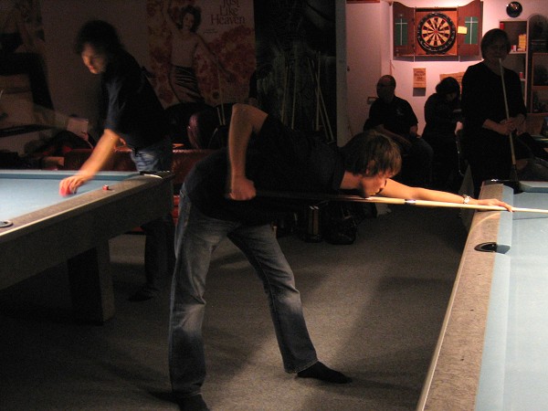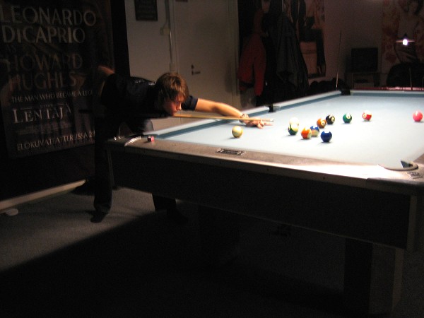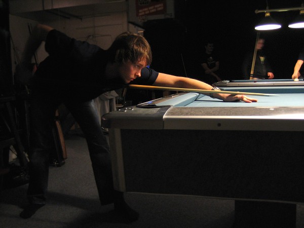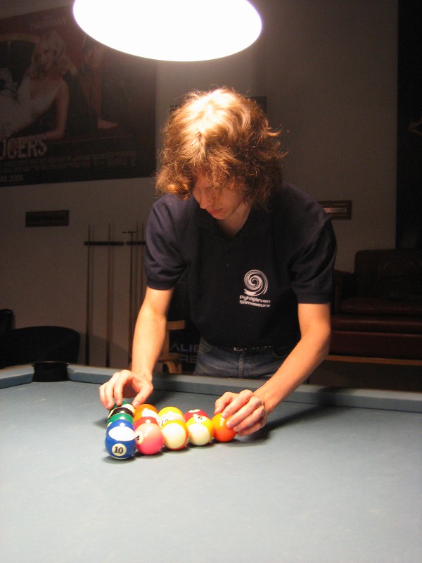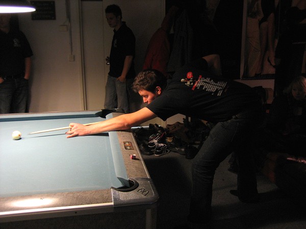 | Säkittäjät, Säätäjät ja Jam Pool vastakkain 22.11.2008Lauantaina 22.11.2008 toteutui pitkään vireillä ollut ystävyysotteluhanke. Vantaalaisen Jam Poolin oli tarkoitus tulla visiitille jo keväällä, mutta aikatauluongelmien vuoksi Tampereelle tulo siirtyi kerta toisensa jälkeen. Kolmen joukkueen välisten ystävyysotteluiden peliajankohta saatiin lyötyä lukkoon lokakuussa, kun siimaseuralaiset Marja Lindén ja Mika Salonen poikkesivat Bar Nr 1:ssä, Jam Poolin kotipaikassa Vantaan Martinlaaksossa. 8-palloa Pelika.net-liigan pistelaskullaAlun perin ystävyysottelut oli tarkoitus pelata täysin valtakunnallisen Pelika.net-biljardiliigan pelisysteemin mukaisesti, joten pussitetuista palloista laskettiin pisteitä. Vantaalaisille tuttua pelitapaa räätälöitiin erämäärien osalta. Lisäksi peliparit arvottiin Pirkanmaan 9-palloliigasta tutulla tavalla. Muilta osin pitäydyttiin Pelikan pelisysteemissä ja 8-pallon virallisissa säännöissä. Myös siimaseuralaisilla oli aiempaa kokemusta pistelaskutavasta, sillä Marja Lindén on Jam Poolin jäsenenä pelannut Jam Poolin joukkueissa ja Timo Leskinen on laskenut pisteitä USA:ssa ollessaan. Käytännössä jokaisesta pussitetusta pallosta saa pisteen ja kasista kolme, jolloin erävoitosta saa kymmenen pistettä. Päivän aikana pelattiin kolme ottelua, kuusi peliä kussakin. Pelaajat pelasivat jokaisessa pelissä kolme erää, joista laskettiin pisteet. Erävoitoilla ei ollut merkitystä vaan ainoastaan pisteillä. Tasoituksia ei ollut käytössä, mutta pelejä pyrittiin tasoittamaan käyttämällä vuoroaloitusta. Kokoonpanomuutoksia viimetingassaYstävyysotteluihin osallistuivat Pirkanmaan 9-palloliigan mestaruussarjan Siimaseuran Säkittäjät ja 1. divisioonan Siimaseuran Säätäjät sekä Jam Pool, johon oli kerätty pelaajia Jam Poolin Pelika.net-liigaa pelaavista joukkueista. Siimaseuran Säkittäjien kokoonpano muuttui vielä siinä vaiheessa, kun ottelupöytäkirjat oli saatu tehtyä ja peliparit arvottua. Jani Ålander joutui jäämään sivuun kokoonpanosta. Joukkueeseen kutsutut Janne Forsman ja Arja Kyllönen joutuivat myös jättämään ystävyysottelut väliin. Näin ollen alun perin Jam Poolin joukkueeseen nimetty Marja Lindén siirtyi Säkittäjiin. Janin poisjäännin myötä Marjalle lankesi kaksinkertainen peliurakka. Siimaseuran Säätäjiä edustivat joukkueen vakiopelaajista Juha Lindroos, Viljami Marjomäki, Antti Patronen ja Tauno "Tane" Rajala. Lisäksi Säätäjissä pelasivat siimaseuralainen Markus Palosaari ja Frendit Teamissa Pirkanmaan liigan 2. divisioonaa pelannut Anssi Lehtinen. Säätäjistä jäivät pois Ville Björn, Ville Juusela, Teppo Klemetti ja Markus Saarenpää. Juho Saarikko saapui Siimaseuralle varsinaisten pelitapahtumien päätyttyä, joten häntä ei nähty ystävyysotteluissa. Jam Pool -joukkueeseen kuuluivat Pertti "Pepe" Elg, Jani Engblom, Sirkku "Sike" Karlstedt, Annika "Ansku" Konu, Tero "Teppo" Meriläinen ja Sini Nieminen. Siimaseuran Säätäjät - Jam PoolSiimaseuran Säätäjiä edustanut Anssi Lehtinen asettui päivän ensimmäisessä pelissä Tero "Teppo" Meriläistä vastaan. Anssi hävisi ensimmäisen erän pistein 4-10, mutta voitti kaksi seuraavaa 10-5 ja 10-7, joten Säätäjät hävisi niukasti 22-24. Viljami Marjomäen erät Sirkku "Sike" Karlstedtia vastaan päättyivät 7-10, 7-10 ja 10-6, joten Viljamille loppukiristä huolimatta tappio 24-26. Säätäjien Antti Patronen voitti Sini Niemisen 30-16 (10-5, 10-7 ja 10-4), vaikka Sini sinnittelikin hyvin. Juha Lindroos joutui taipumaan Jam Poolin Pertti "Pepe" Elgille 20-26 (4-10, 6-10 ja 10-6). Markus Palosaari voitti Annika "Ansku" Konun 26-22 ja kavensi Jam Poolin etumatkaa. Eräkohtaiset pisteet menivät 10-6, 10-6 ja 6-10. Tauno "Tane" Rajala taisteli Jani Engblomia vastaan, mutta Jani pelasi hyvin ja voitti 12-30. Siimaseuran Säätäjät hävisi tasaisen ottelun Jam Poolille yhteispistein 136-142. Siimaseuran Säkittäjät - Jam PoolEnsimmäisen ottelun päätyttyä alkoi Siimaseuran Säkittäjien urakka. Sami Saariaho oli pelipäällä ja voitti Sirkku "Sike" Karlstedtin vakuuttavasti 30-6 (10-1, 10-3 ja 10-2). Mika Salonen sai vastaansa Annika Konun. "Ansku" pussitti mm. muutaman vaikean ja näyttävän kyydin, mutta pisteet Mikan ja Säkittäjien eduksi 30-12 (10-3, 10-5 ja 10-4). Marja Lindén hävisi Jani Engblomille 23-27, mutta sai tuuletella erävoittoa Janin pussittaessa kasin ja kiven. Pisteet menivät siis 7-10, 6-10 ja 10-7. Timo Leskinen voitti Sini Niemisen 30-11 pelissä, jossa pisteet jaettiin 10-5, 10-5 ja 10-1. Olli Järvinen sai vastaansa Jam Poolin kapteenin Tero "Teppo" Meriläisen, tulos 16-25. Marja Lindénin toinen peli päättyi Pertti "Pepe" Elgin voittoon 13-30. Eräpisteet olivat 6-10, 3-10 ja 4-10. Siimaseuran Säkittäjät voitti Jam Poolin 142-111. Siimaseuran Säkittäjät - Siimaseuran SäätäjätKun Jam Pool oli pelannut omat ottelunsa, oli siimaseuralaisten keskinäisen välienselvittelyn vuoro. Mika Salonen voitti Tauno Rajalan 30-8 (10-3, 10-2 ja 10-3), joten kisavetäjän molemmat pelit sujuivat ilman erähäviöitä. Marja Lindén sai herrasmiesmäisesti pelanneelta Juha Lindroosilta aloituksen eteen, mutta Säätäjien nuorimies voitti 15-30 (5-10, 5-10 ja 5-10). Timo Leskinen väänsi Viljami Marjomäen kanssa tasaisesti, pisteet 24-18 (10-5, 4-10 ja 10-3). Kun pelit alkoivat olla ehtoopuolella, Olli Järvinen sai juonesta kiinni ja kepitti Markus Palosaaren 30-7. Sami Saariaho voitti hyvällä pelillä Anssi Lehtisen 30-9 (10-0, 10-5 ja 10-4), joten myös Sami selviytyi päivän urakastaan ilman erähäviöitä. Viimeisessä pelissä Marja Lindén taipui Antti Patroselle 17-23 (10-3, 0-10 ja 7-10). Säkittäjät voitti Säätäjät 146-95. Ystävyysottelut saatiin pelattua iltaseitsemään mennessä. Siimaseuran Säkittäjät voitti molemmat ottelunsa. Jam Pool voitti Siimaseuran Säätäjät, joka jäi voitoitta. Virallisen osuuden jälkeen biljardi-