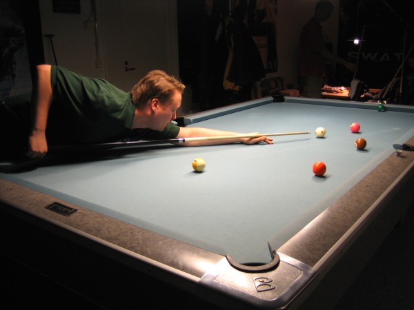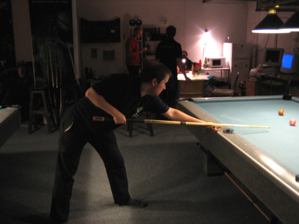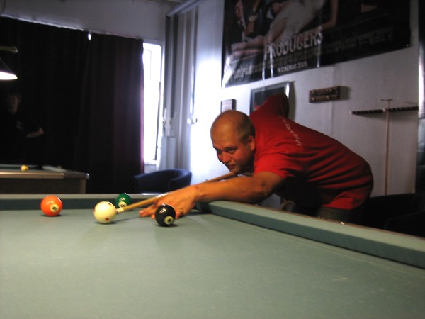 | Siimaseuran Sankarien debyytti ja Klemetin paluu 28.08.2009Vuosina 2006-2009 Pyhäjärven Siimaseura ry:tä edusti Pirkanmaan Pool-liigassa kaksi joukkuetta. Kaudelle 2009-2010 Siimaseuran Säätäjien ja Siimaseuran Säkittäjien rinnalle perustettiin kolmas joukkue, punapaitainen Siimaseuran Sankarit. Koska Siimaseuran Säätäjien alkuperäiseen miehistöön kuulunut Teppo Klemetti palasi sinipaitoihin ja kaikki Siimaseuran Sankarien pelaajat eivät entuudestaan tunteneet pelipaikkaa saatika toisiaan, Mika Salonen ideoi joukkueille jo perinteeksi muodostuneet kauden avajaiset. Vaikka kauden 2009-2010 avausturnajaiset lopulta pelattiinkin Siimaseuran kolmen oman joukkueen kesken ja Juha Ilorantaa lukuun ottamatta puhtaasti siimaseuralaisvoimin, tapahtumaan kutsuttiin muitakin biljardituttuja ja liigapelaajia. Myös kaikki siimaseuralaiset, jotka eivät pelaa Pirkanmaan liigaa, olivat tervetulleita. Siimaseuralaisjoukkueet ja pelisysteemiVihreäpaitainen mestaruussarjajoukkue Siimaseuran Säkittäjät sai paikalle kuudesta pelaajastaan vain Sami Saariahon ja Mika Salosen. Ari "Aape" Asp, Janne Forsman, Olli Järvinen ja Timo Leskinen eivät olleet mukana. Joukkuetta täydensi 2. divisioonan PB Dieseliin nimetty Juha Iloranta. Siimaseuran Säätäjät, joka valmistautui alkavaan 1. divisioonan kauteen, pelasi Teppo Klemetin johdolla. Tepon lisäksi kokoonpanossa olivat Juha Lindroos, Antti Patronen ja Tauno "Tane" Rajala. Markus Saarenpää ja Juha Saarikko olivat poissa, joten pelaajia oli neljä. Kolmas joukkue olikin sitten se uusi tuttavuus, Siimaseuran Sankarit. Tämä 2. divisioonaan perustettu ja ensimmäisenä joukkueena koko liigaan ilmoittautunut tulokasporukka esiintyi punaisissa paidoissaan, jotka Mika Salonen ojensi pelaajille ennen pelien alkua. Kun paidat olivat päällä ja muodollisuudet hoidettu, joukkue oli valmis ensiesiintymiseensä. Kippari Markus Palosaaren lisäksi Sankareissa debytoivat Juuso Järventie, Kari Keinonen, Mikko Kemppainen, Viljami Marjomäki ja Teemu Miskala. Vain Hannu Mikkola oli poissa. Turnajaisissa pelattiin 9-palloa niin, että kaikki joukkueet pelasivat vastakkain. Sankareissa oli kuusi pelaajaa, joten jokaisessa ottelussa pelattiin kuusi peliä. Niinpä Sankarien pelaajille tuli illan aikana kaksi peliä mieheen ja Säätäjien edustajille kolme. Säkittäjien pelaajat tahkosivat kaksi peliä kummassakin ottelussa eli heitä odotti neljän pelin iltapuhde. Pelattavaa riitti koko illaksi. 9-palloa pelattiin viiteen erävoittoon tasoituksilla, jotka määräytyivät pelaajakohtaisesti Pirkanmaan liigan sarjatason mukaan. Pelin avauserän aloitti pelaaja, joka antoi eteen. Muilta osin toimittiin liigasääntöjen puitteissa, mutta neuvoa sai kysymättäkin. Säännöt olivat kaikille selvät, joten pöytäkirjoihin arvotut ottelut alkoivat rullata eri järjestyksessä kuin oheiset pöytäkirjat osoittavat. Siimaseuran Sankarit - Siimaseuran SäätäjätPelattiin viiteen erävoittoon niin, että pelien alkaessa tilanne oli 2-1. Mikko Kemppainen, joka oli ensi kertaa Siimaseuralla, aloitti mallikkaalla 5-1-voitolla Säätäjien Tauno "Tane" Rajalasta. Toisessa pelissään "Tane" sai huomata, miksi Kari Keinosta sanotaan usein Kari "Kontra" Keinoseksi. Kontratilanteessa 4-4 Kari teki aloitusparttin ja voitti 5-4. Sankarien historian ensimmäisen erävoiton otti Markus Palosaari, joka voitti Juha Lindroosin 5-2. Myös Viljami Marjomäki hankki pelivoiton Sankareille kukistamalla Teppo Klemetin 5-3. Säätäjien Antti Patronen voitti Juuso Järventien ja Teemu Miskalan, mutta Siimaseuran Sankarit vei koko ottelun pelein 4-2 ja erin 27-20. Sankarien "Hyvä meidän jengi!" -huutojen säestyksellä onnistumisista sekä ensimmäisestä erävoitosta ja parttista iloittiin vilpittömästi. Siimaseuran Sankarit osoitti jo ensimmäisissä pelaamissaan peleissä olevansa potentiaalinen, hyvällä yhteishengellä varustettu porukka. Sankarien pelinautinto ja iloisuus olivat sitä luokkaa, ettei joukkueen edesottamukset jättäneet ketään läsnäolijaa kylmäksi. Jos ja kun sama tahti säilyy, Sankarit tulee voittamaan monta liigaotteluaan jo joukkuehengellään. Siimaseuran Säkittäjät - Siimaseuran SäätäjätToisessa ottelussa pelien alkutilanne oli pääsääntöisesti 0-1. Mutta koska Säkittäjiä vahvistanut Juha Iloranta pelaa 2. divisioonassa, hänen peleissään lähtölukemat olivat 2-1. Juha Iloranta olikin mies paikallaan, sillä Juha Lindroos kaatui 5-2 ja Tauno Rajala 5-1. Mika Salonen toivotti Teppo Klemetin tervetulleeksi takaisin Säätäjiin niin, että safetypelin turvin heltisi 5-3-voitto. Toisessa pelissään Mika voitti Juha Lindroosin 5-3. Säkittäjien 6-0-voittolukemat Sääjäjistä varmisti Sami Saariaho, joka kepitti Antti Patrosen 5-3 ja Teppo Klemetin 5-2. Erät menivät niin ikään murskaavasti: 30-14. Siimaseuran Sankarit - Siimaseuran SäkittäjätViimeisenä päättyi Siimaseuran Sankarien ja Säkittäjien välinen ottelu, joka oli Säkittäjille kaikkea muuta kuin helppo. Tosin täytyy muistaa, että pelattiin tasoituksilla, joten Juha Ilorannan peleissä lähtötilanne oli 2-2 ja kaikkien muiden peleissä 2-0 Sankarit-pelaajien hyväksi. Sankarien Teemu Miskala piti Sami Saariahoa ahtaalla ja antautui vasta aivan kalkkiviivoilla eli 4-5. Kari Keinonen voitti Samin 5-2. Juuso Järventien ja Juha Ilorannan vääntö päättyi 4-5, kuten myös Markus Palosaaren ja Mika Salosen kohtaaminen. Viljami Marjomäki puolestaan voitti Juha Ilorannan 5-4. Ottelun ja koko päivän viimeisessä pelissä Mikko Kemppainen johti Mika Salosta tasoitusten turvin 2-0. Kun välikautta viettävä Mika jätti Klemettiä vastaan tehonneet safetynsä käyttämättä ja hyökkäsi, hyvin omalla tasollaan pelannut Mikko Kemppainen kiitti ja kuittasi pelin nimiinsä 5-1. Sankarien äänekkäästi kannustaessa ja Mikon pussittaessa Mika totesikin puolileikillään, ettei vastaavanlaista kannustusta ole tainnut sattua omalle kohdalle... Tämä ke