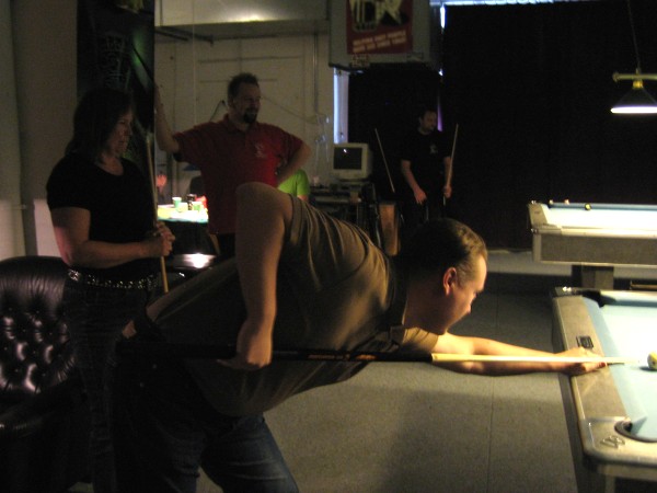 | Ei sittenkään niin perinteistä ystävyysottelua 15.09.2012Kun Pyhäjärven Siimaseuran pelipaikkaa ja sen ensimmäistä pool-pöytää kasattiin vuonna 2005, oli mestarina pitkän linjan biljardimies Harri "Hepsu" Hepo-oja. Hänen kaverinsa Iiro Leppänen viimeisteli ns. vallikumien päätylaput, kun taas "Hepsu" hoiti varsinaisen pöytäasennuksen. Tuolloin siimaseuralaisista oppipoikana oli etenkin Timo Leskinen, joka on sittemmin vastannut Siimaseuran pöytäremonteista. Pyhäjärven Siimaseura ry:n kotisaliksi vuosien saatossa muuttuneen kaksipöytäisen Pyhäjärven Siimaseuran pöytäremontti valmistui Pirkanmaan Pool-liigan sarjakauden 2012-2013 alla. Päätettiin kutsua vanhat pöytämestarit paikalle ja pelata perinteinen 9-pallokilpailu, jossa yhdistyksen liigajoukkueet ottavat toisistaan mittaa tasoituksin ja vierailevilla tähdillä vahvistettuina. Siimaseuran Säkittäjät vastaan muutAlun perin oli tarkoitus pelata 9-palloa tasoituksilla niin, että 2. divisioonan Siimaseuran Sankarit olisi kohdannut mestaruussarjan Siimaseuran Säkittäjät. Koska Teemu Miskala oli ainoa Sankarit-pelaaja, päätettiin pelata viidellä viittä vastaan Siimaseuran Säkittäjien kohdatessa muut. Muiden joukkueessa olivat Teemu (tasoitus 2), "Hepsu" (0) ja Iiro (2) sekä siimaseuralaiset Marja Lindén (2) ja Matti "Masa" Järvinen (2). "Hepsun" toiveesta pelimuoto olikin 10-pallo. Siimaseuran Säkittäjistä paikalla olivat Sami Saariahon johdolla